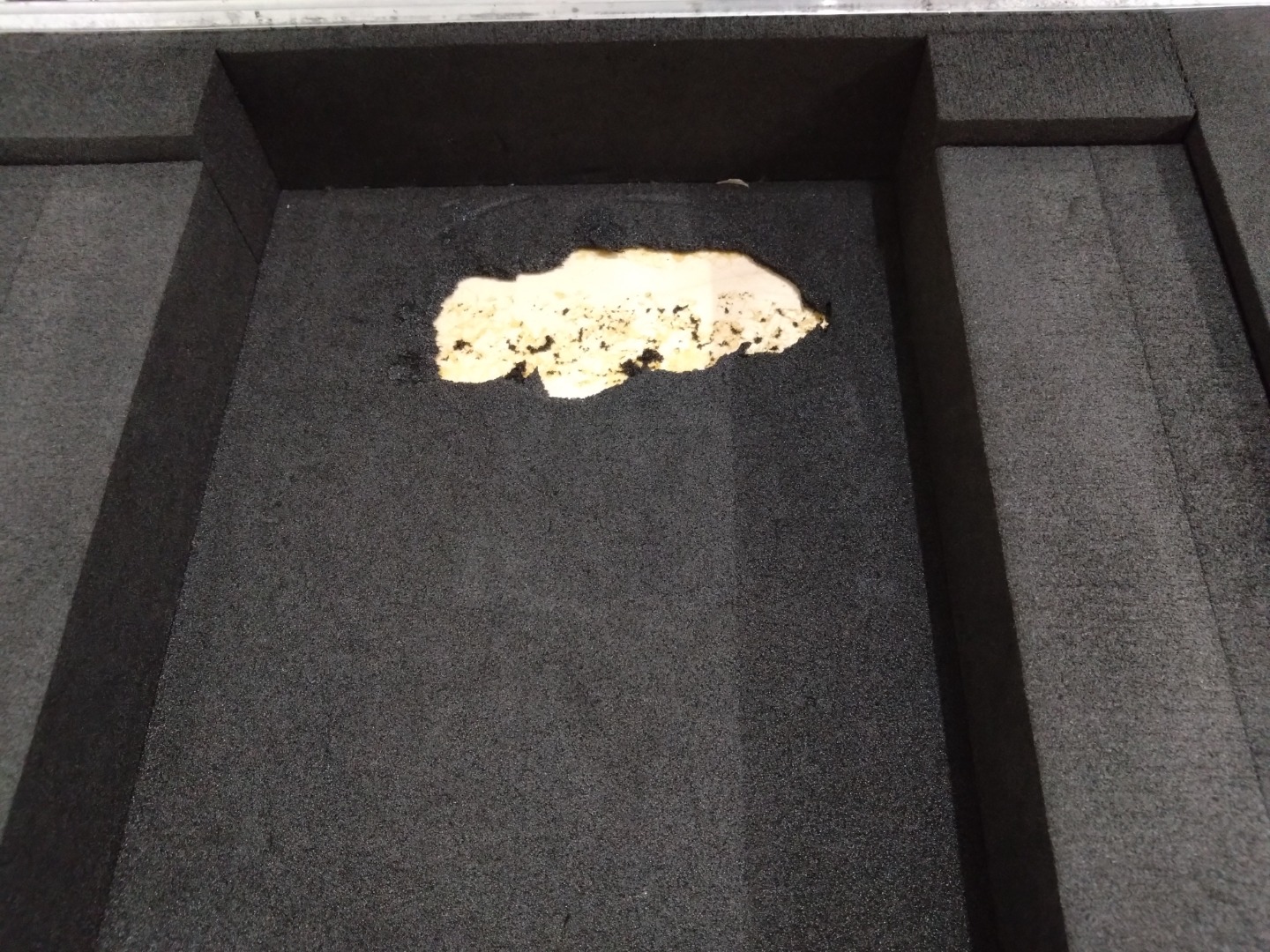 Die Polsterung innen hat durch Entfernen der Einklebebschriftung manchmal diese kleine Lücke.