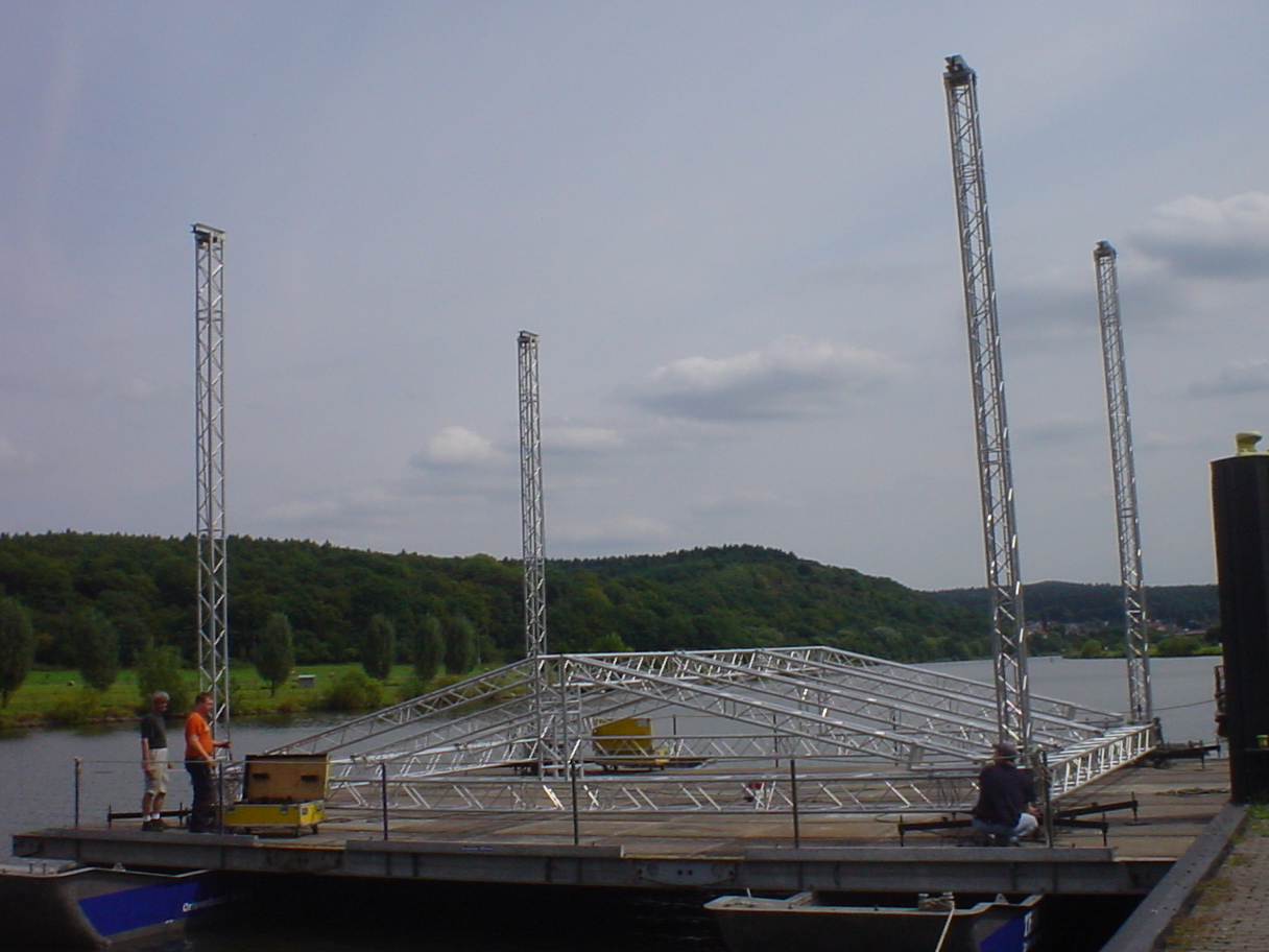 4x MTP4 Prolyte Towersets /SleeveBlock incl Laschen der Windverbände , Toppullie, Base, Kurze und Lange Ausleger,