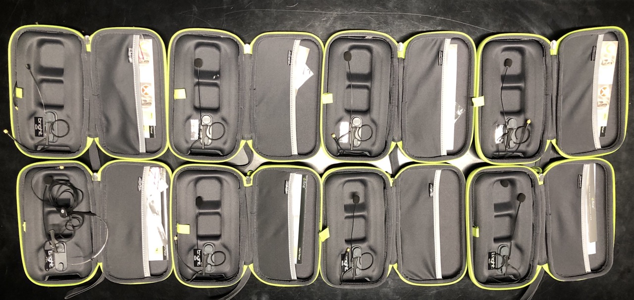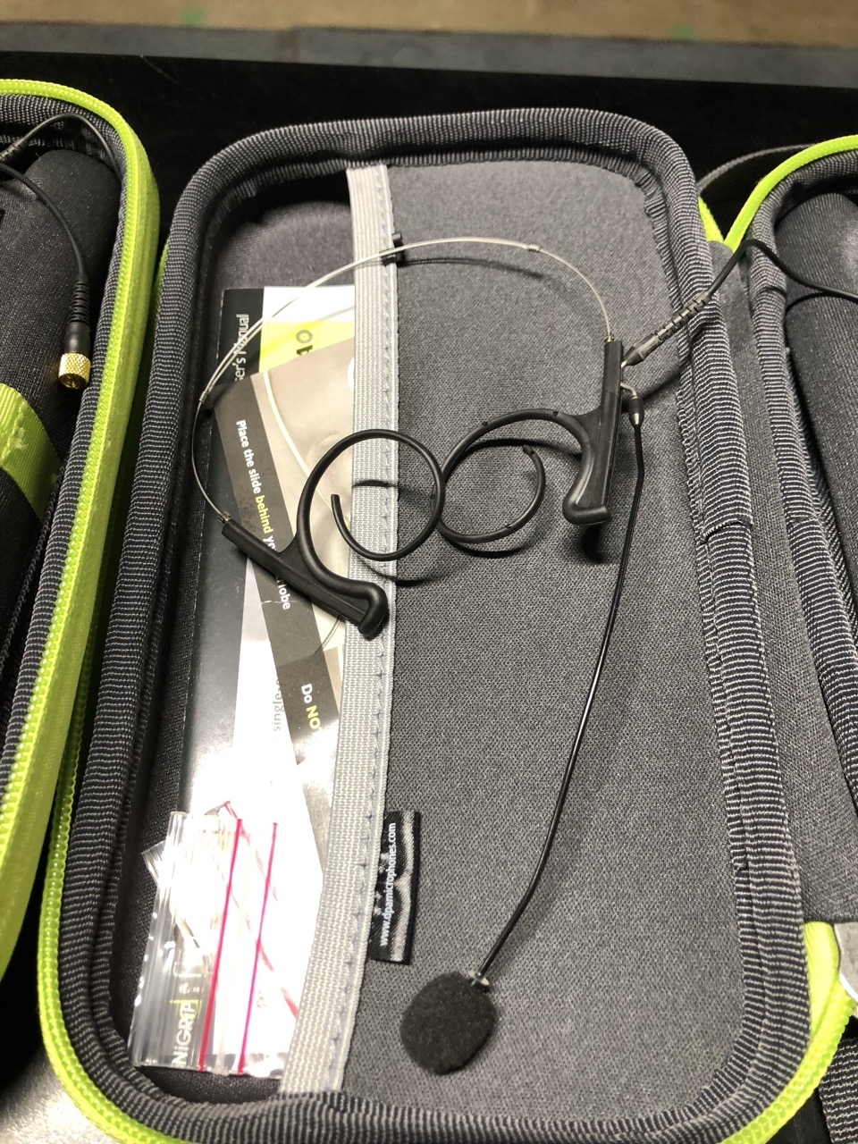 Includes seven single-ear beige and one dual-ear beige ear-worn microphones designed for discreet, high-quality audio capture in professional sound settings.