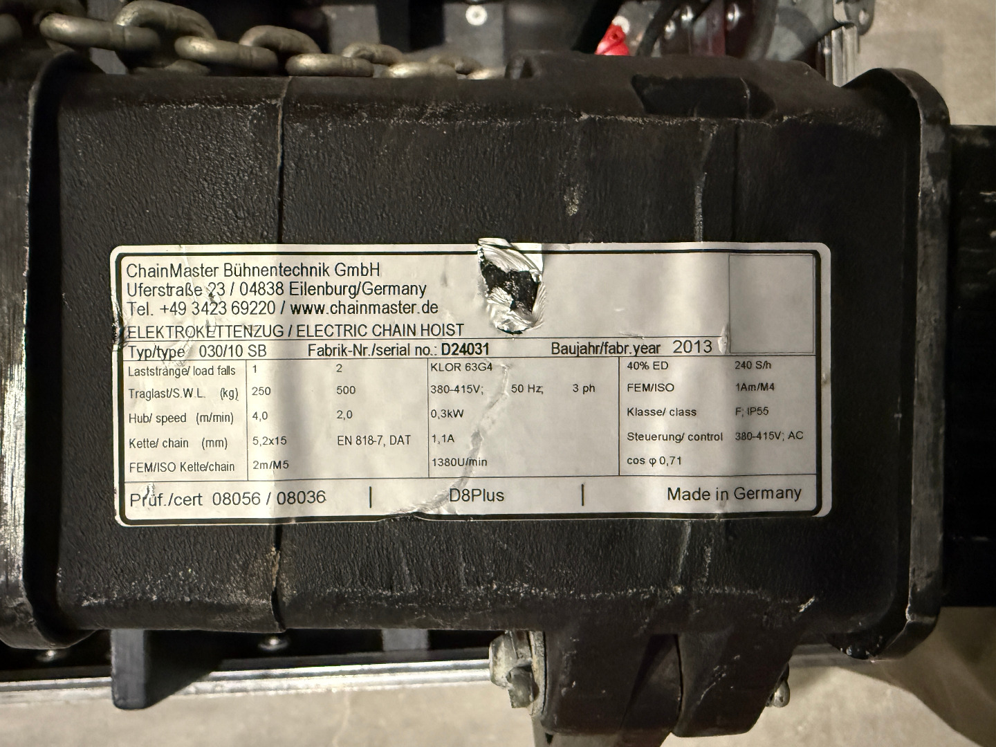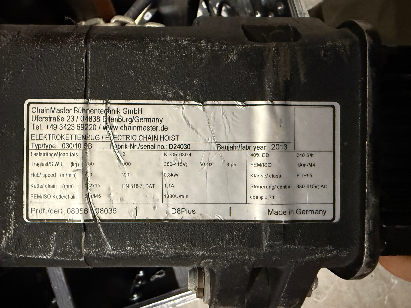Wir verkaufen 2x ChainMaster 250kg D8Plus Kettenzug im Case