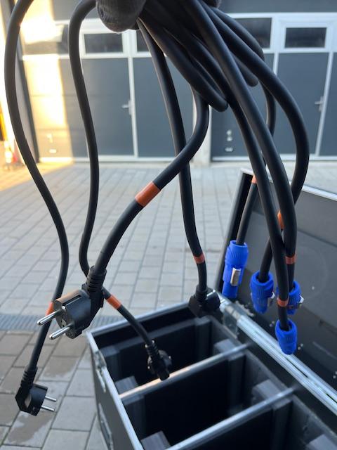 Zu jedem Head gibt es 2 Omega Bügel, einen original Standfuß und ein Neues 1,5m PowerCon Kabel.