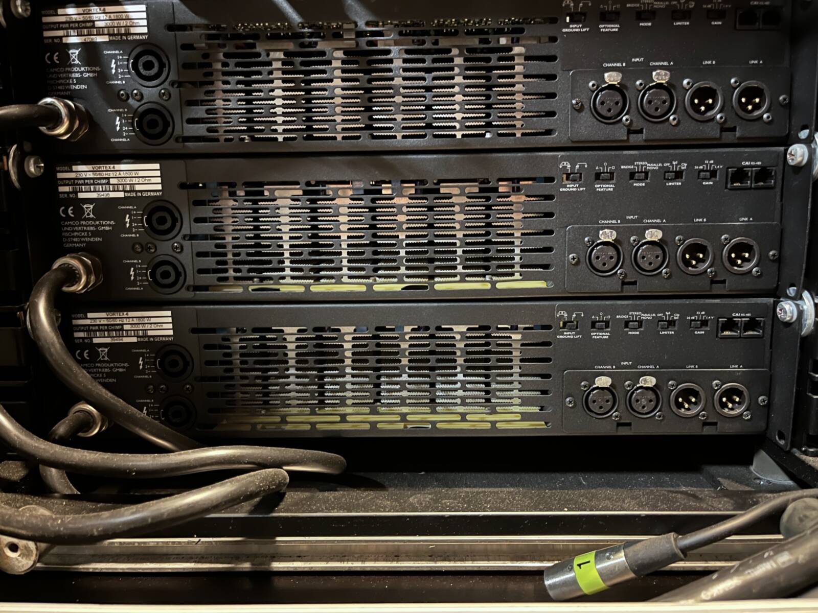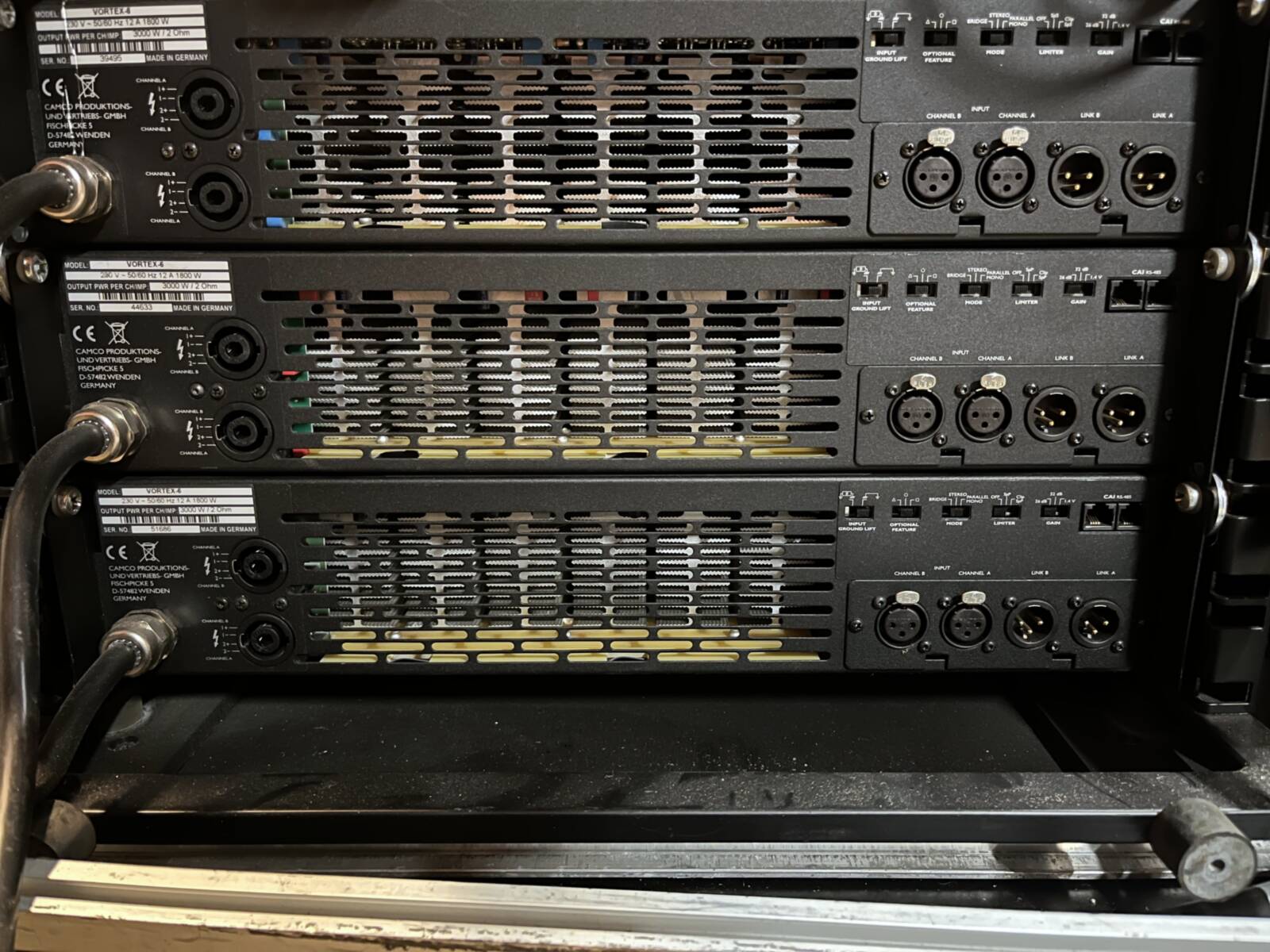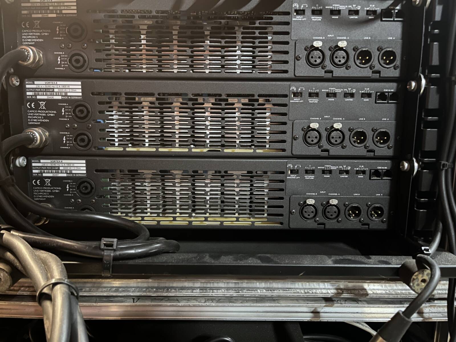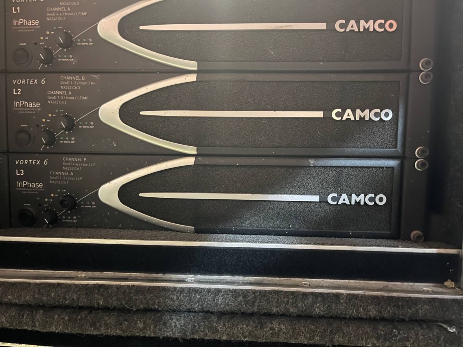 Set of 12 Camco Vortex-6 units suitable for amplifying professional audio, provided without transport cases. Ideal for sound reinforcement applications requiring robust performance.