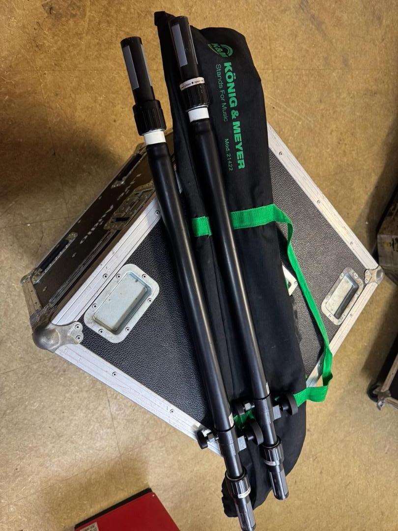 Aus unserem Bestand verkaufen wir aktuell 1 Set gebrauchte schwarze K&M 21366 Distanzstangen "Ring Lock" Höhe: 95-135cm, 2 Stück mit Tasche.
