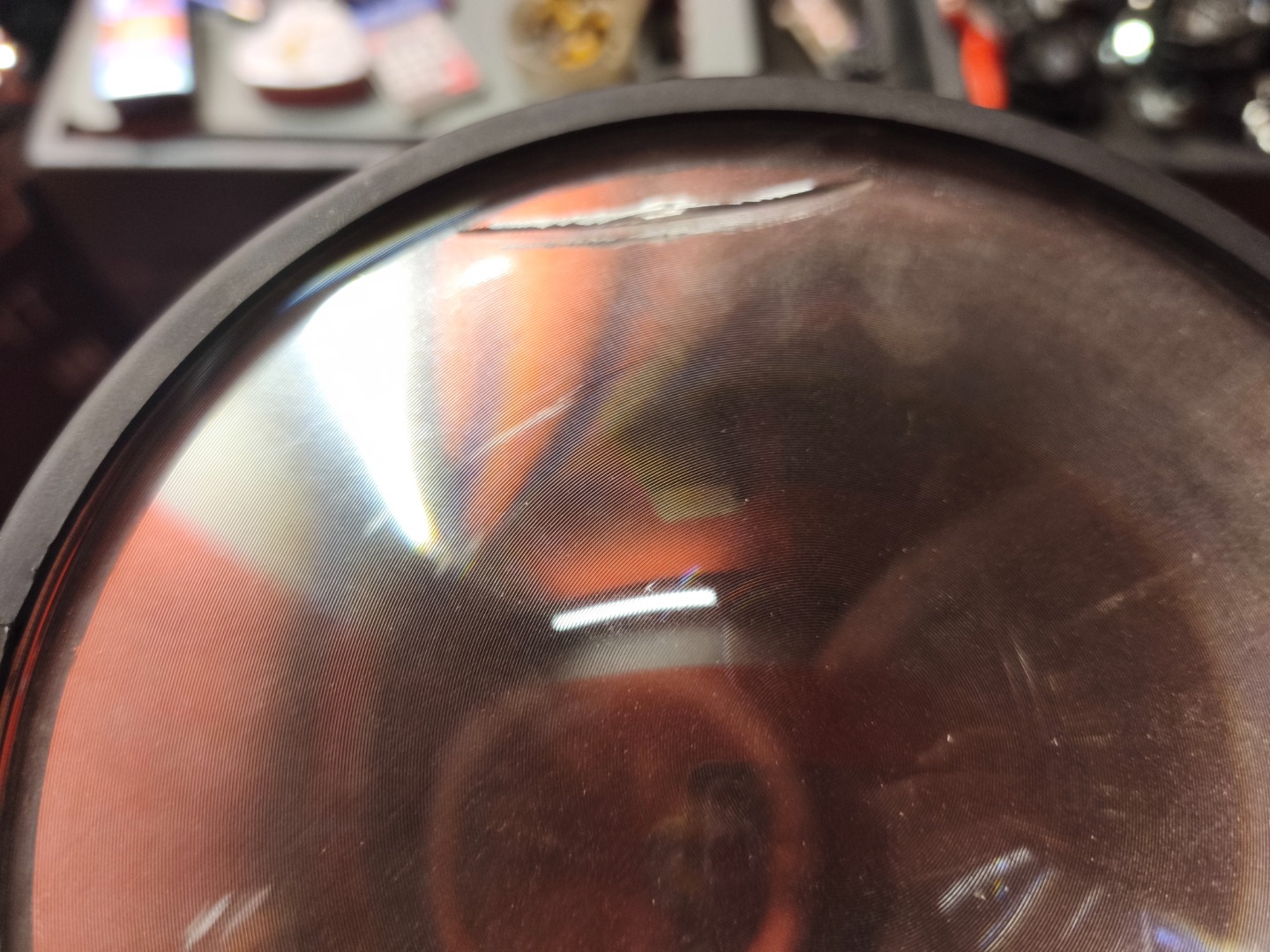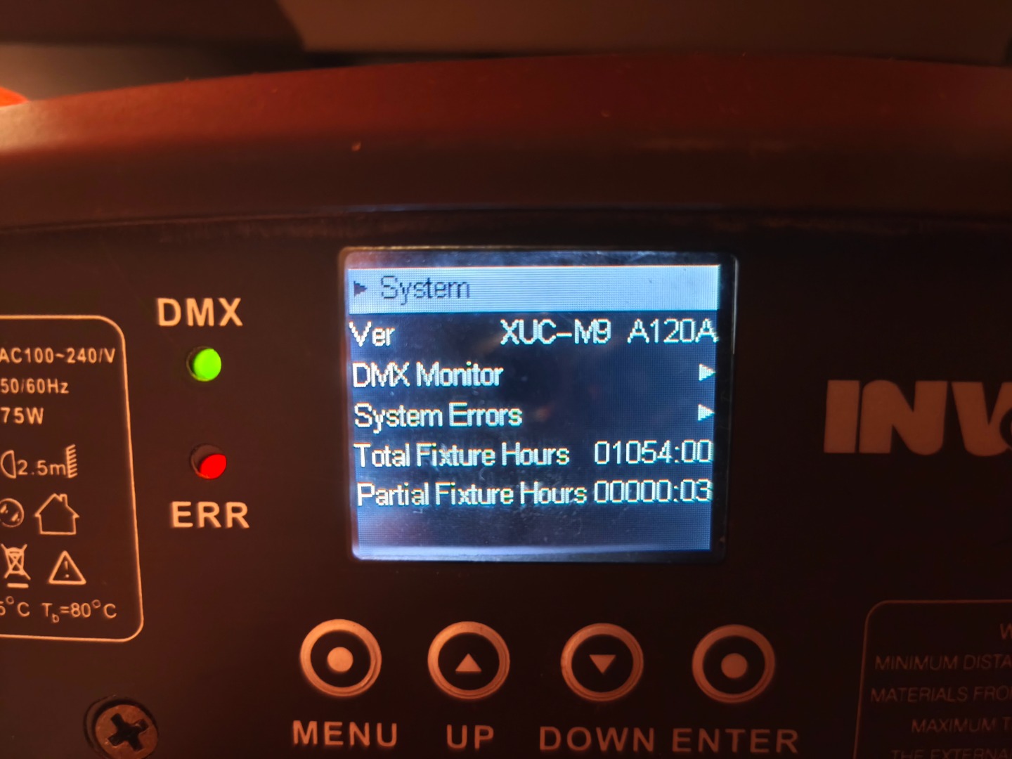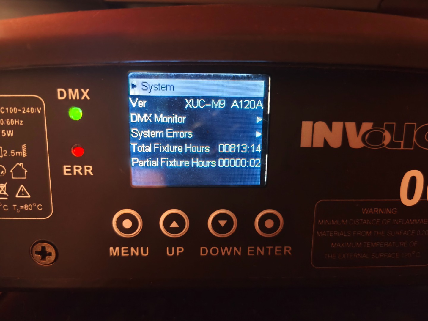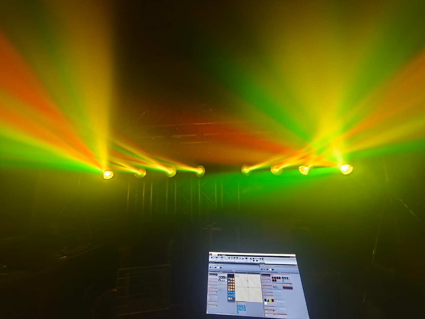 Gesamtbetriebsstunden nur ca. 800-1200 je Gerät. Ein Movinghead hat einen kleinen Riss in der PVC-Linse (siehe Foto). Keine Funktionseinschränkung dadurch.