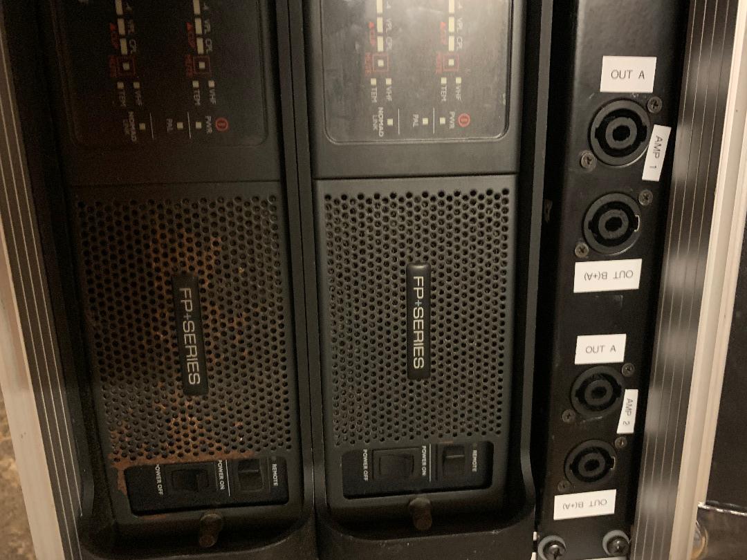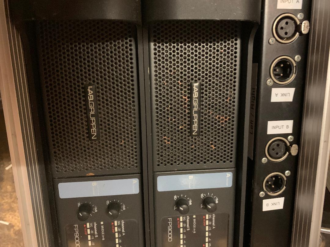 4x Labgruppen FP9000 amps available. Each amp has 2 channels of 3000watt 4ohm, see attached specsheet.