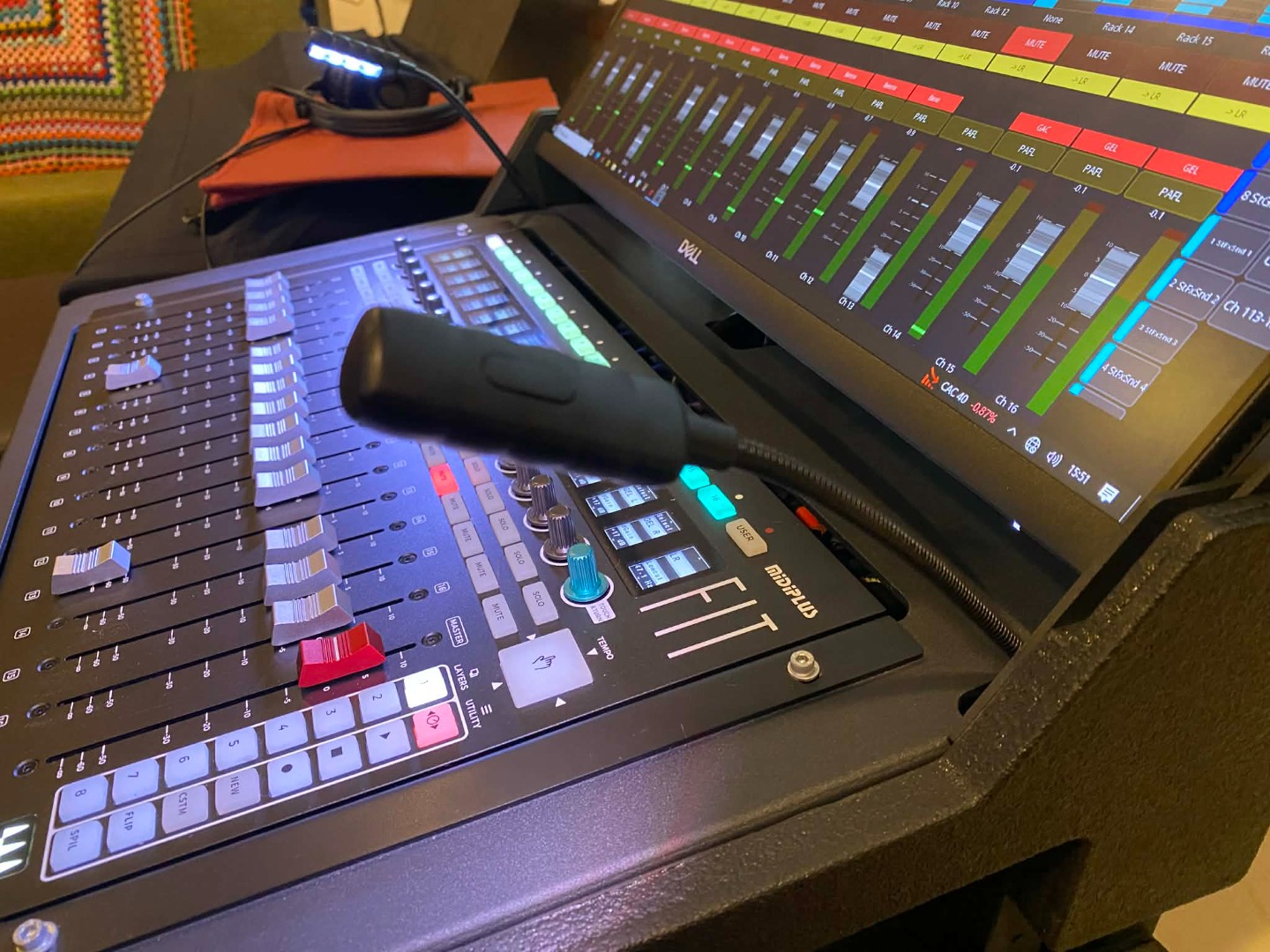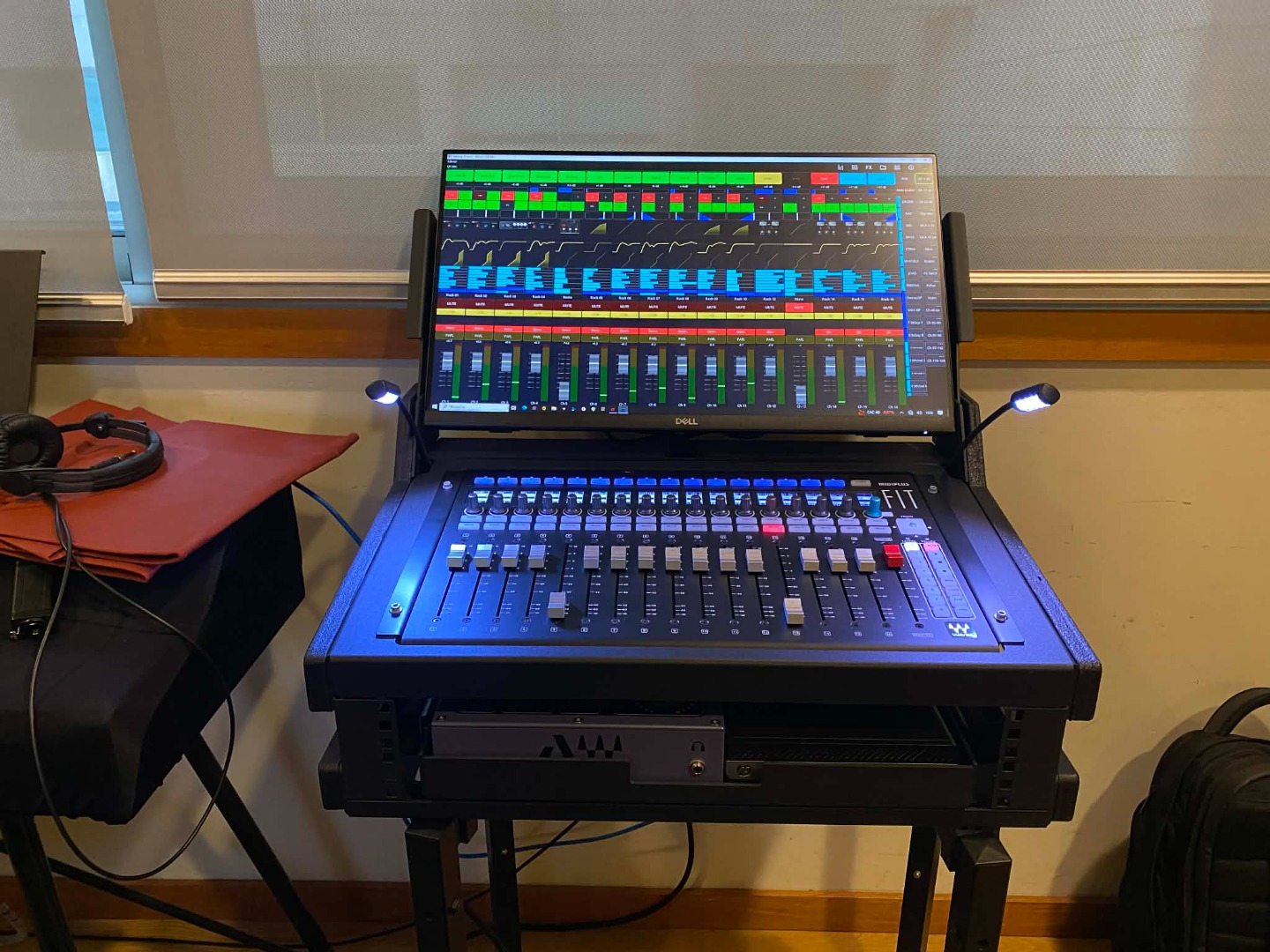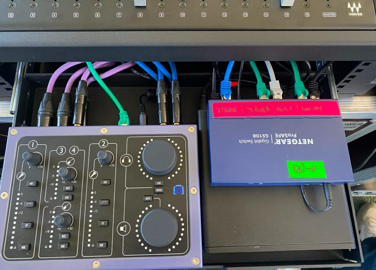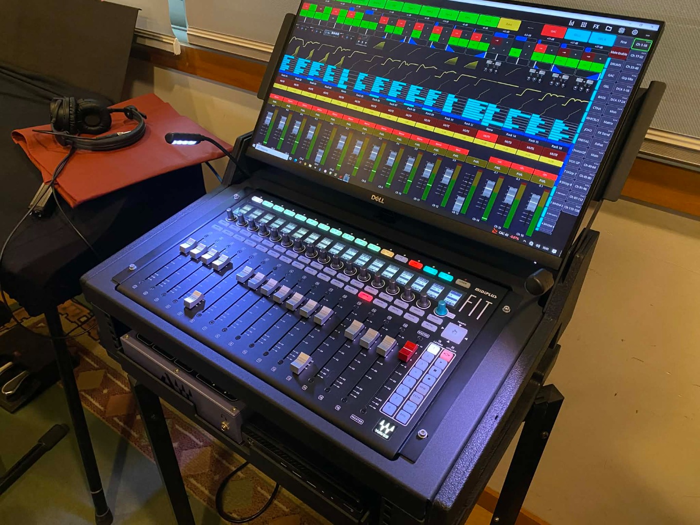 - Allen&Heath CDM48 with RackUltra FX card and Waves V3 card.