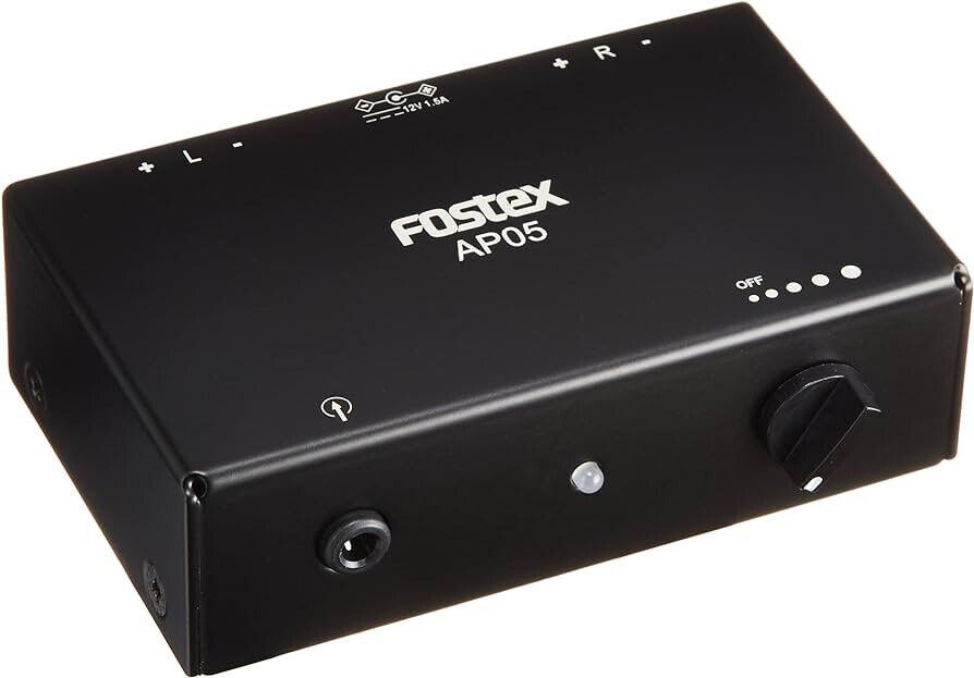 Fostex AP05 handlicher Stereo-Verstärker, 2 x 5W (RMS) , handlicher Stereo-Verstärker, 2 x 5W (RMS), inkl. Netzteil, Lautsprecherkabel (2 x 1,5m), Stereo-Miniklinke-Kabel (0,8m), 86mm x 26mm x 67mm (BxHxT).