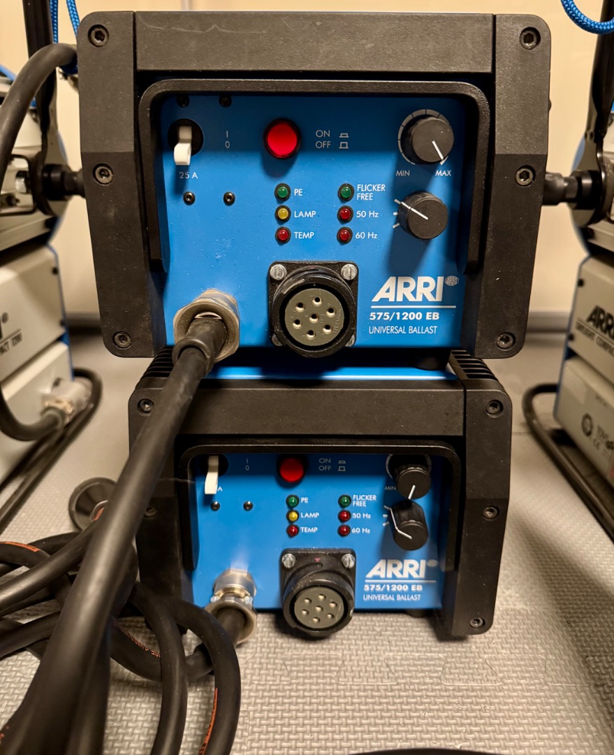 - ARRI 575/1200 EB Universal-Ballasts (flicker-free) mit Tragebügel und Netzanschlusskabel (Schuko-Stecker)