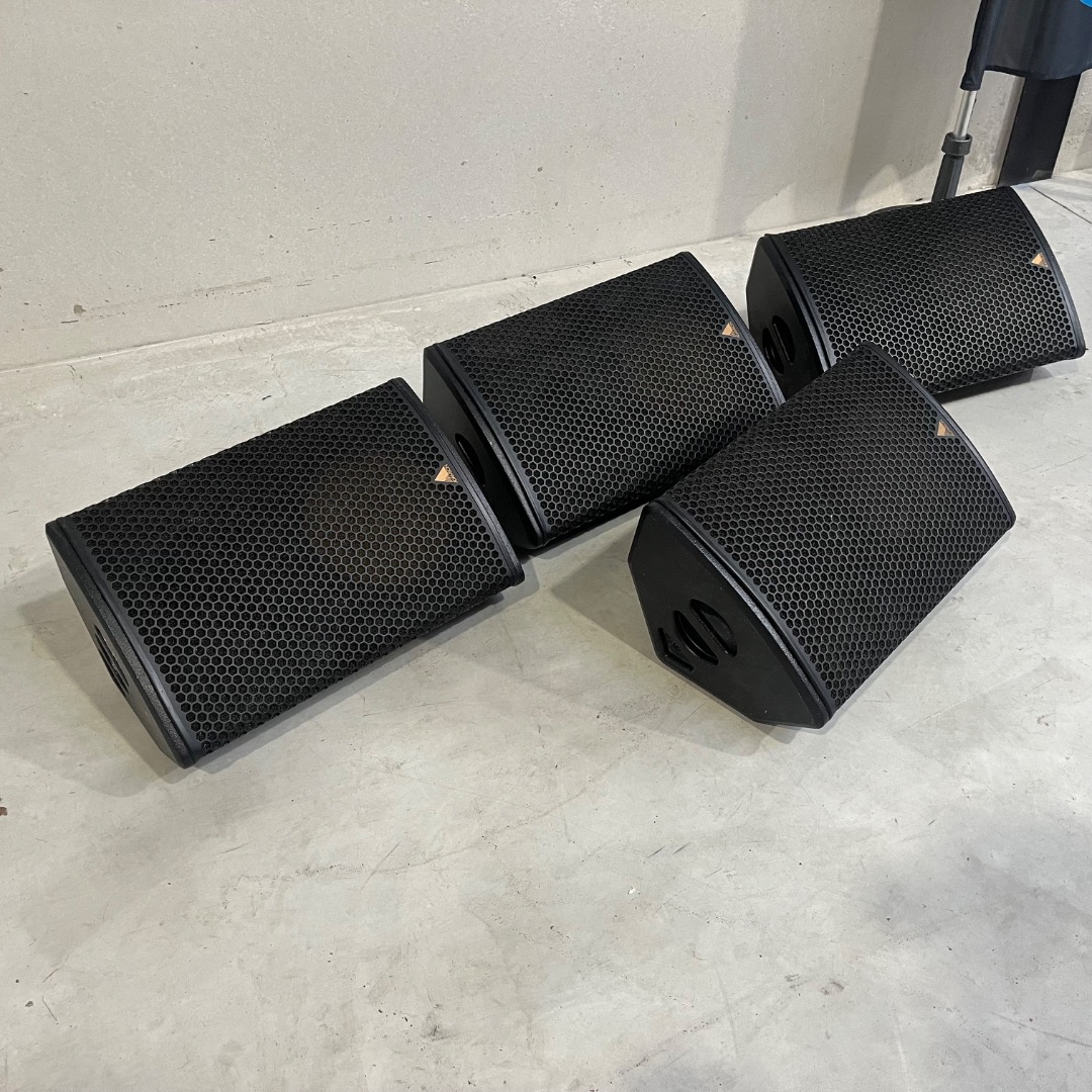 The Adamson M12 monitor, is a high-performance, low-profile stage wedge designed to meet the rigorous demands of professional touring and installation. This monitor is celebrated for its incredibly lightweight build and symmetrical trapezoid design, which allows two units to function as perfectly matched mirrored pairs on stage. At its core, the M12 utilizes Adamson's advanced componentry, featuring a 12-inch Kevlar Neodymium mid-bass driver (ND12-L) and a 3" Diaphragm / 1.4" Exit Compression Driver. The Kevlar cone construction is key to its remarkably low distortion, excellent mid-frequency response, and extreme durability, even in challenging outdoor environments.