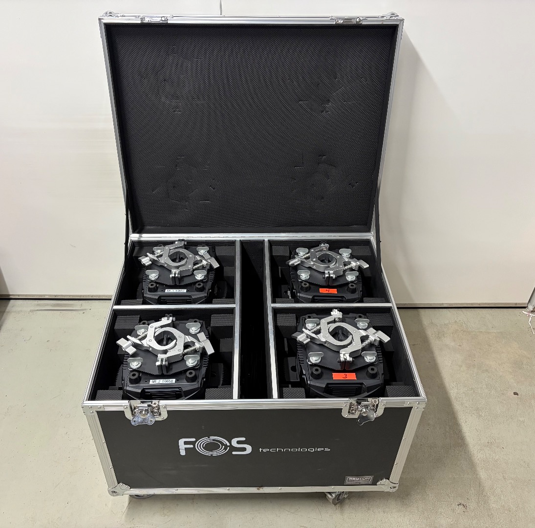 Wir verkaufen 1 Set mit 4 Stk. der FOS Scorpio Wash 7x60W inkl. Case und Folding Clamps (können im Case angebaut bleiben)