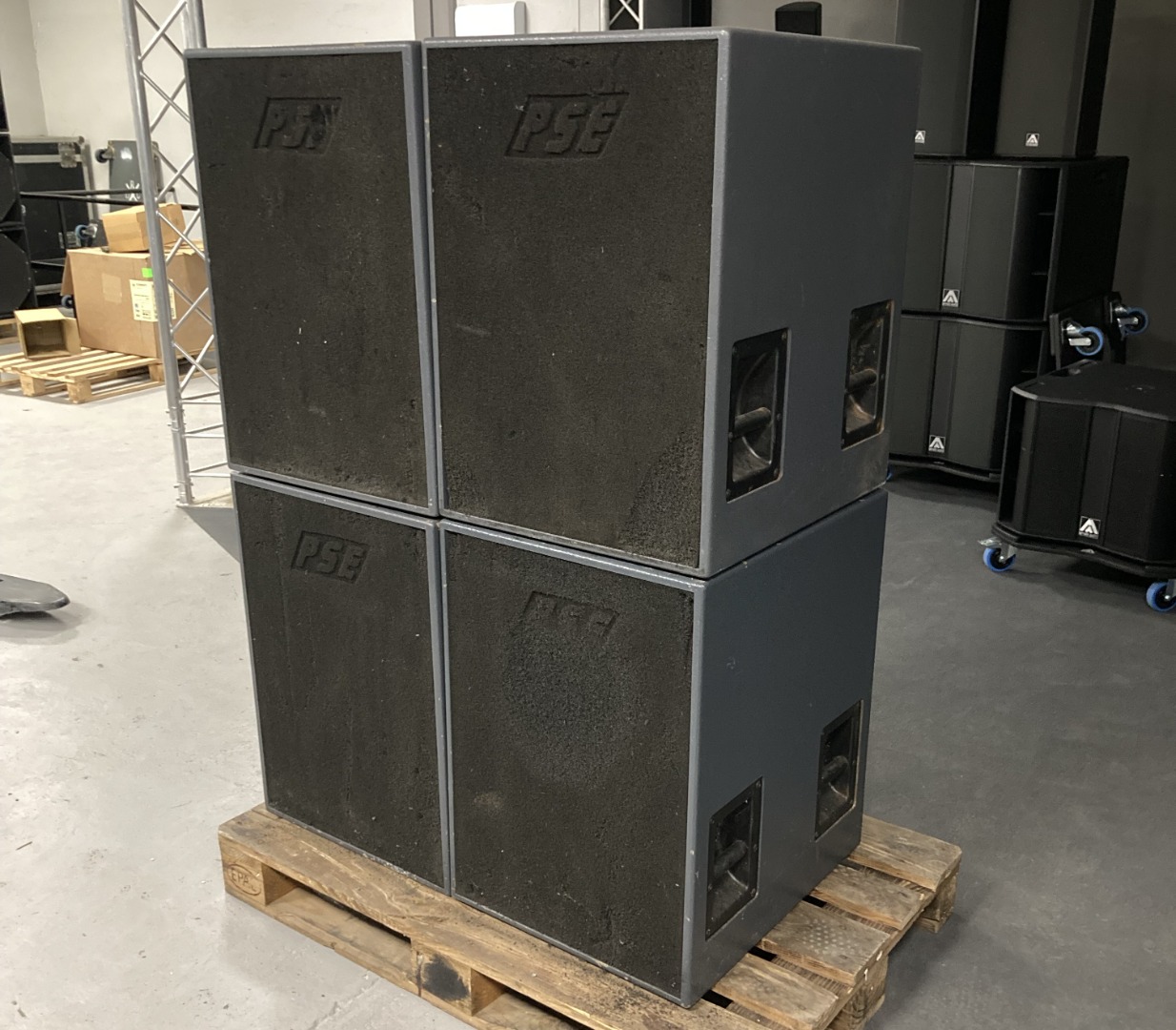 Zum Verkauf kommen bis zu 12x PSE B81 horngeladene Subwoofer. Alle Subs sind geprüft und original bestückt mit dem Precision Device PD1850. 4 Stück haben den original grauen Lack, 8 Stück sind mit schwarzem Strukturlack.