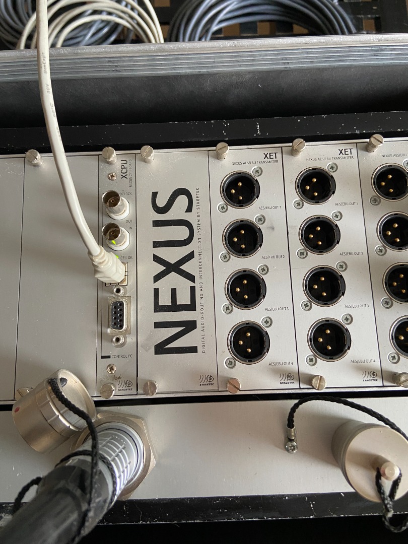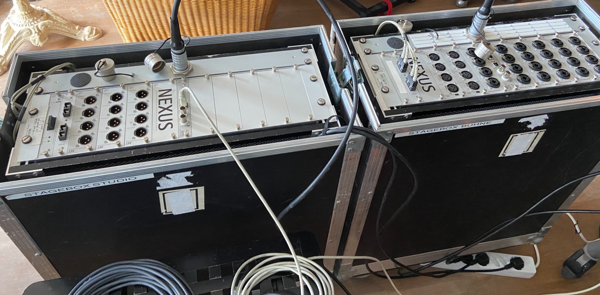Verbindung von der Stagebox zur Studiobox per 2x Lichtleiter, 100 Meter redundant!