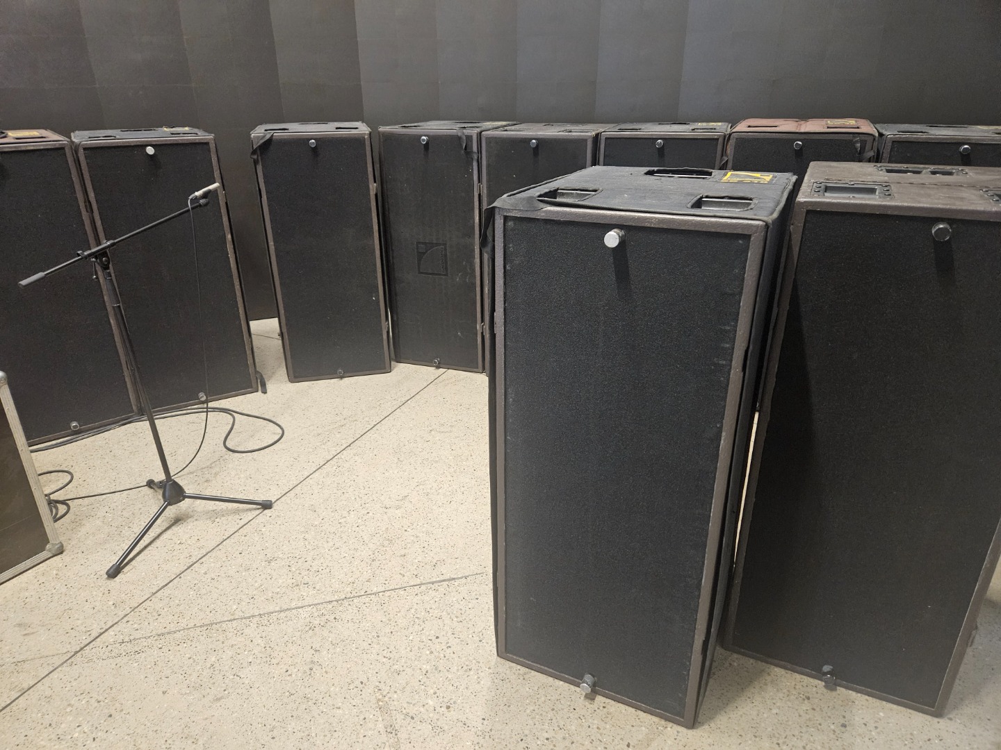 Set of 10pcs L-Acoustics SB218 2x18" high-power subwoofers with PLA dollies and covers.