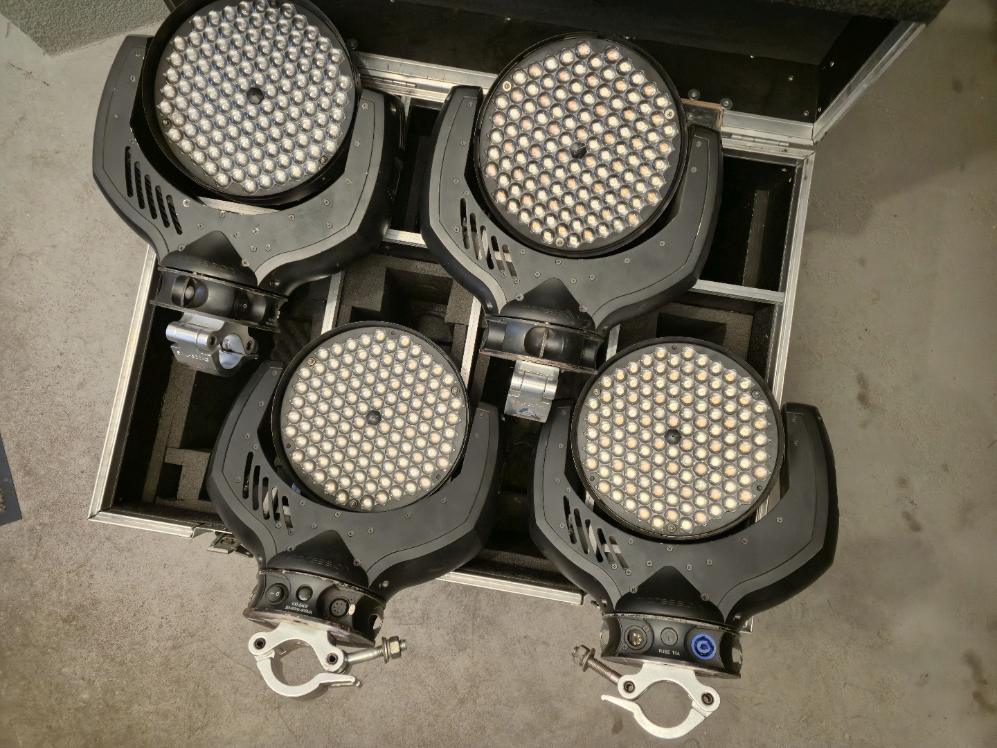 Zum Verkauf steht ein 4er Set GLP Impression 120rz. Die Lampen sind voll funktionsfähig und haben dem Alter entsprechende Gebrauchsspuren. Der DMX-Anschluss ist 5-polig