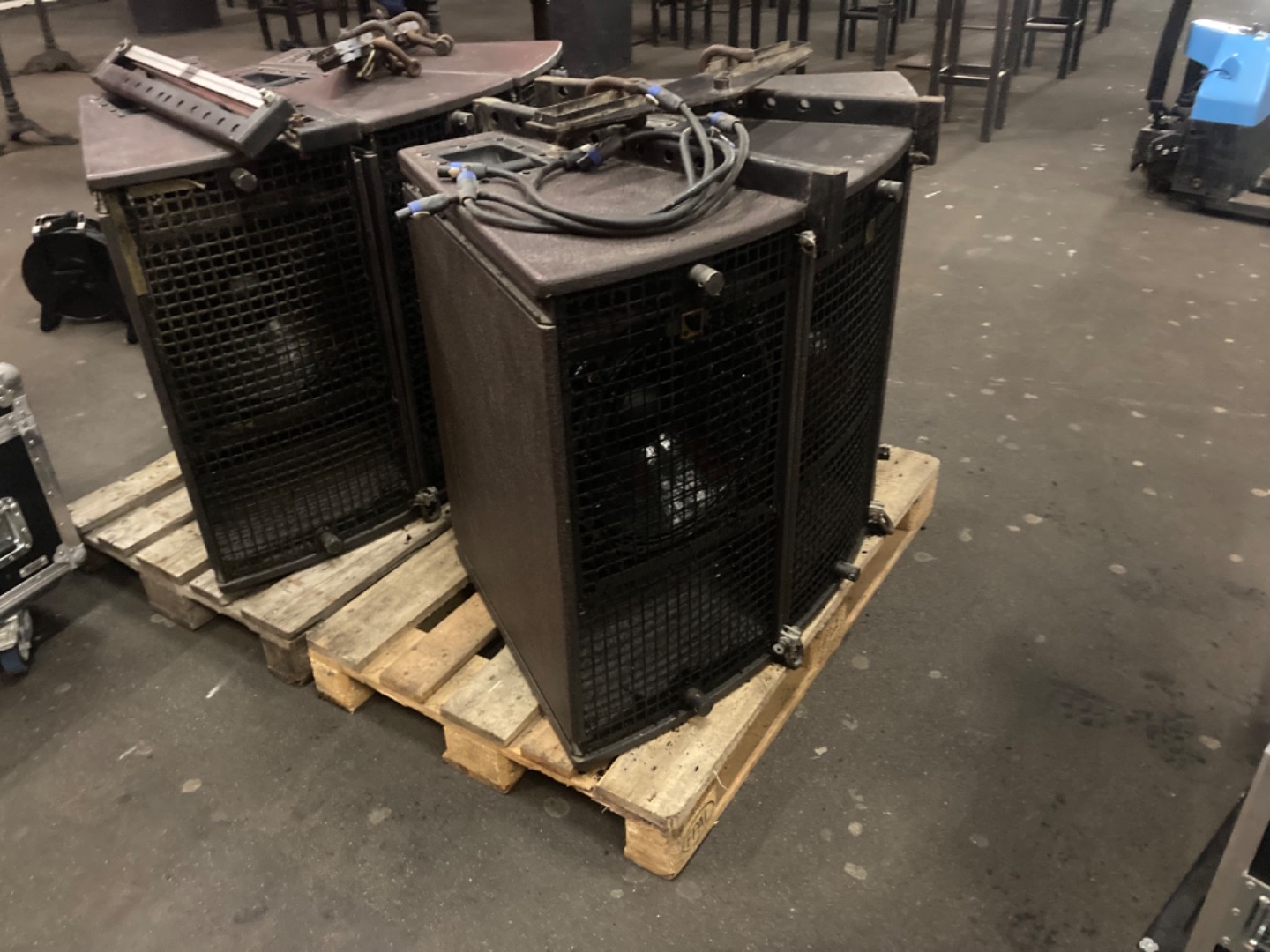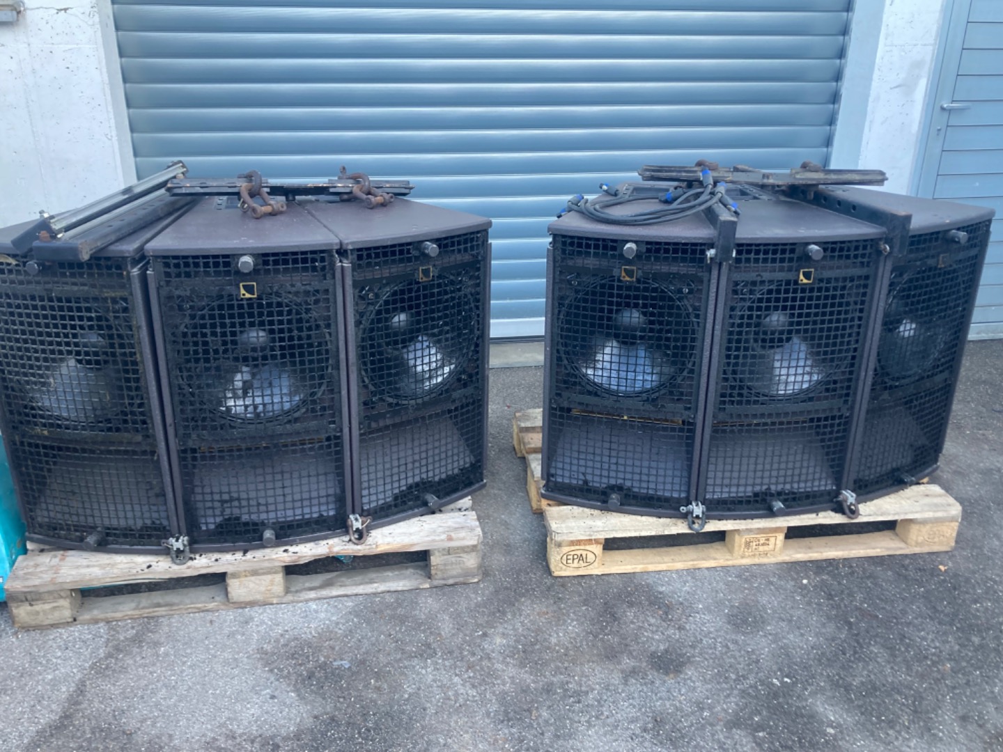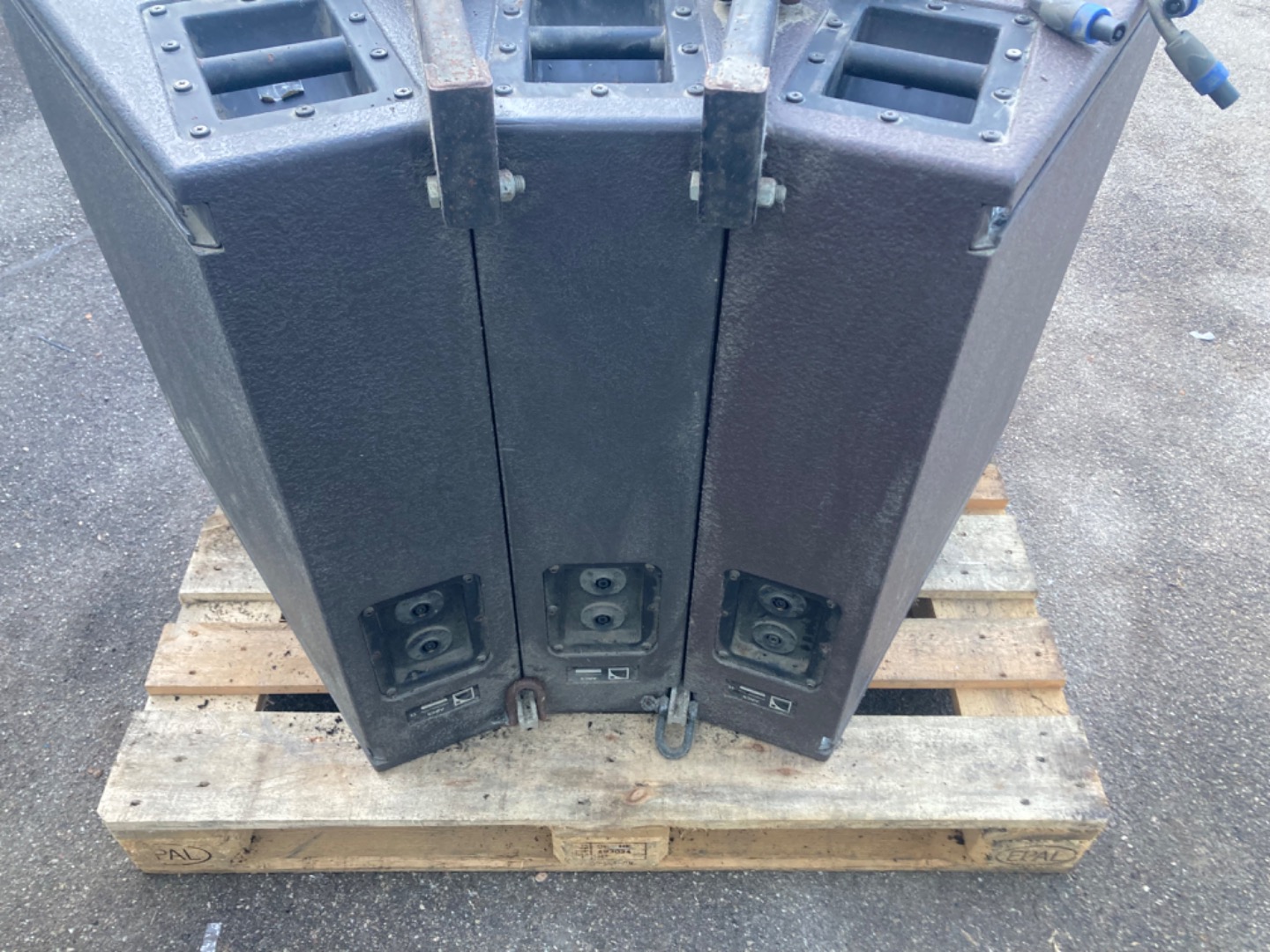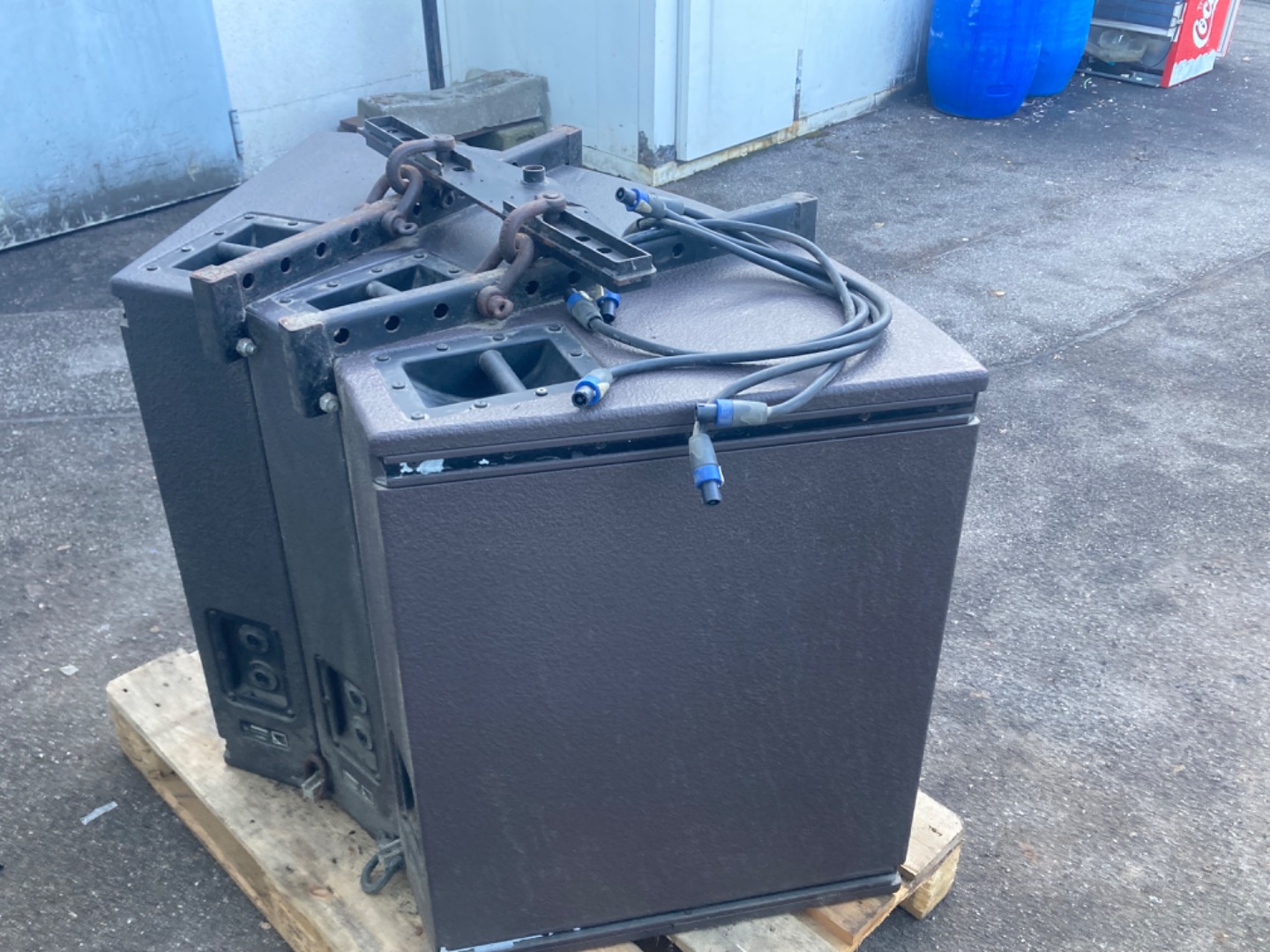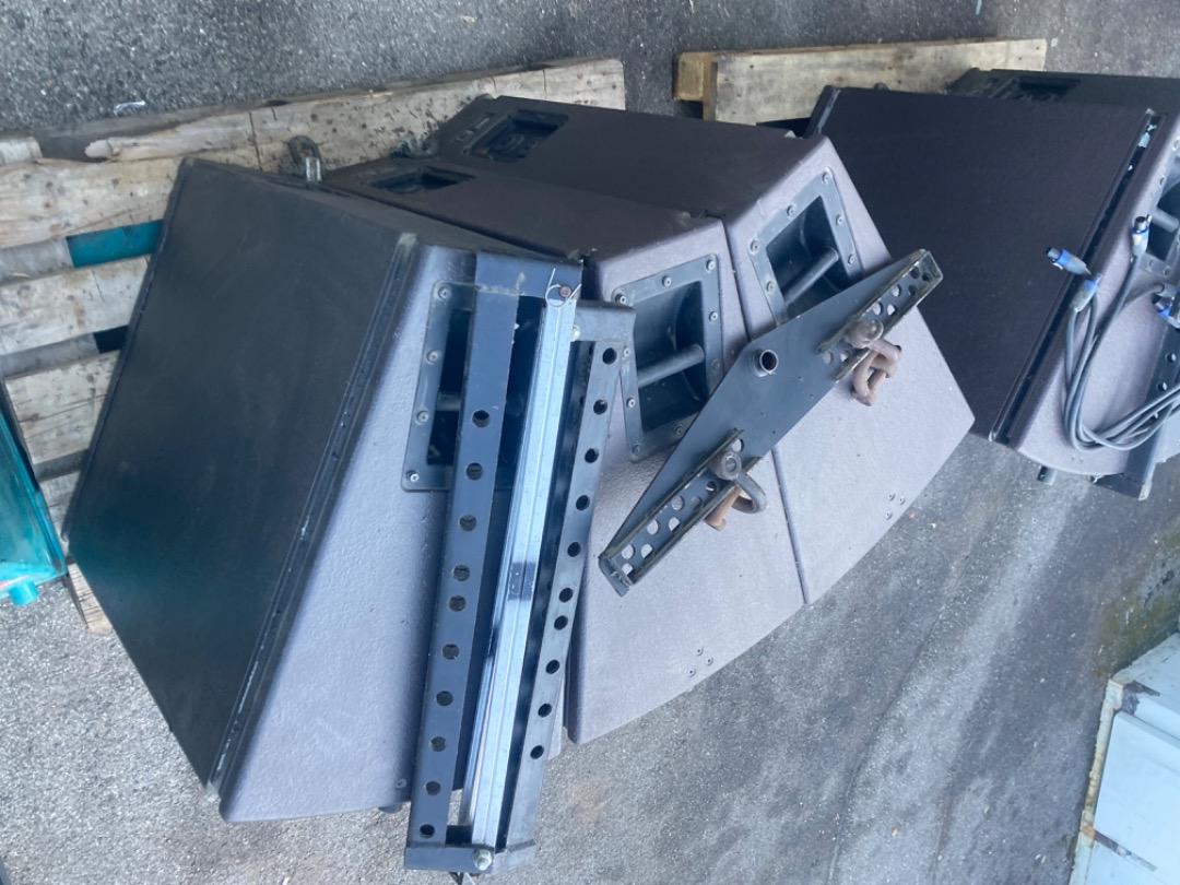 Die Lautsprecher stammen aus einer Festinstallation, in welcher sie ca. 20 Jahre im Einsatz waren. Dabei ist jeweils ein Set zum Fliegen, bestehend aus 4x Bump und 2x Flybar.