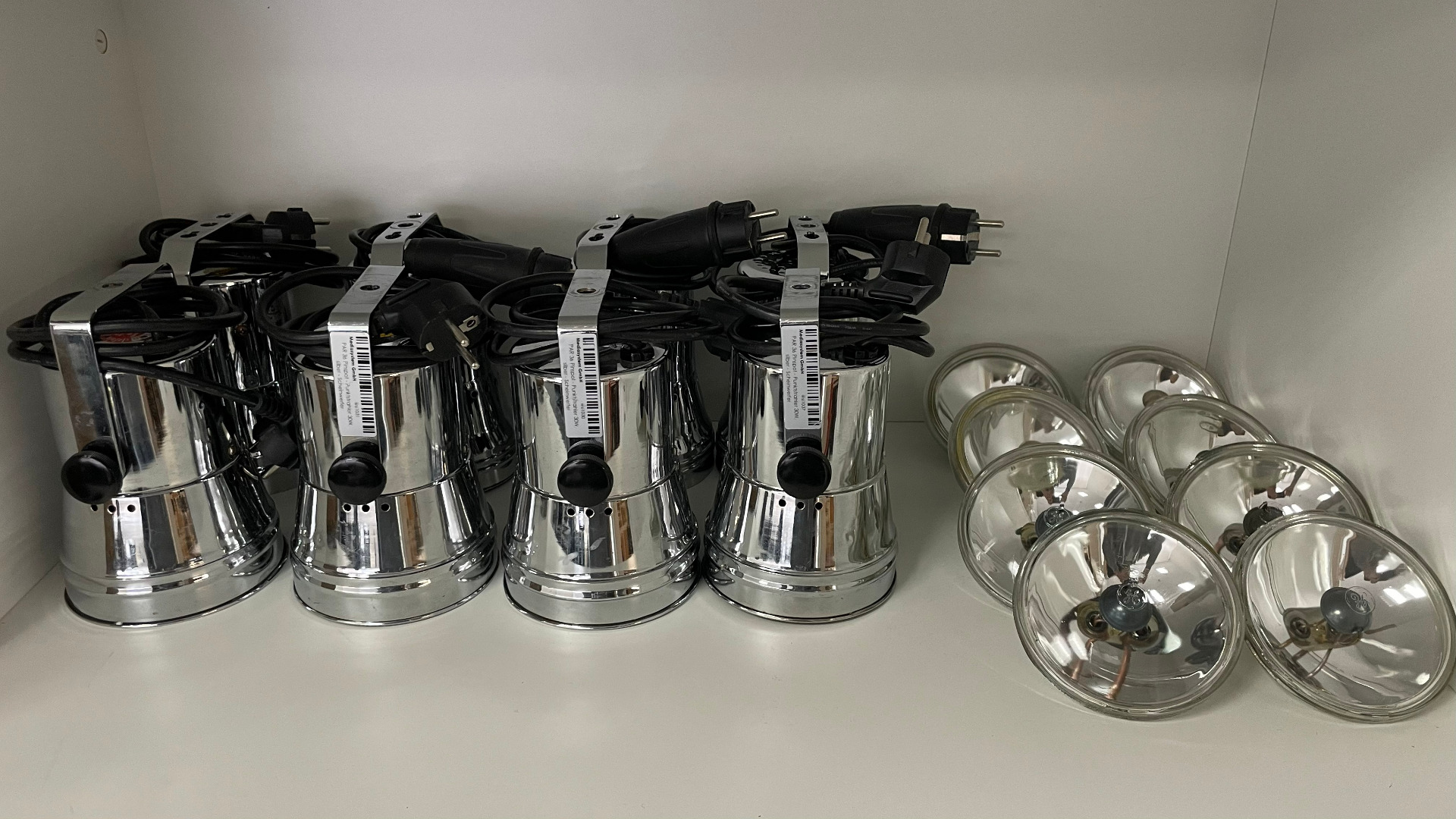 Verkauft wird ein Set aus 8 PAR 36 Pinspots inkl. Ersatzleuchtmittel.