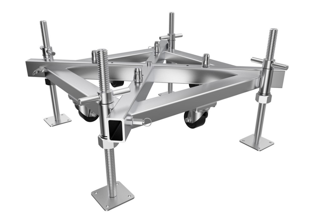 1x Global Truss F34 Tower Basis Fußkreuz (Basement), ALU, 4x Rollen, inkl. SPINDELFÜSSE