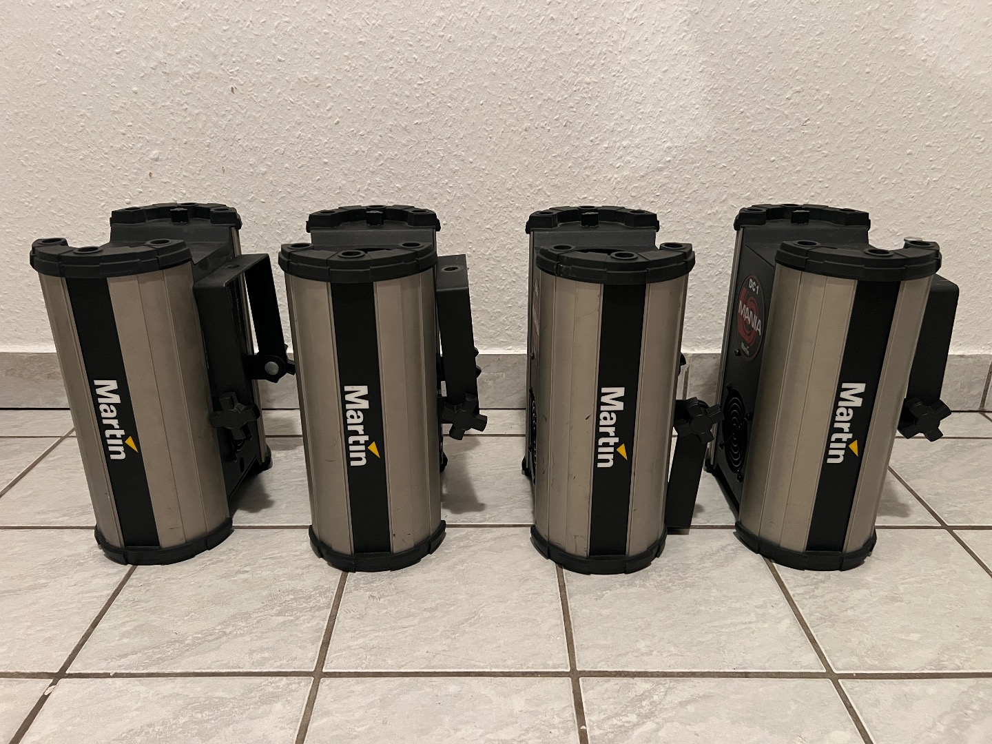 Die Geräte sind in gutem gebrauchten Zustand. Für den Einsatz müssen die Leuchtmittel 100W, 12V Halogen MR16 erneuert werden.