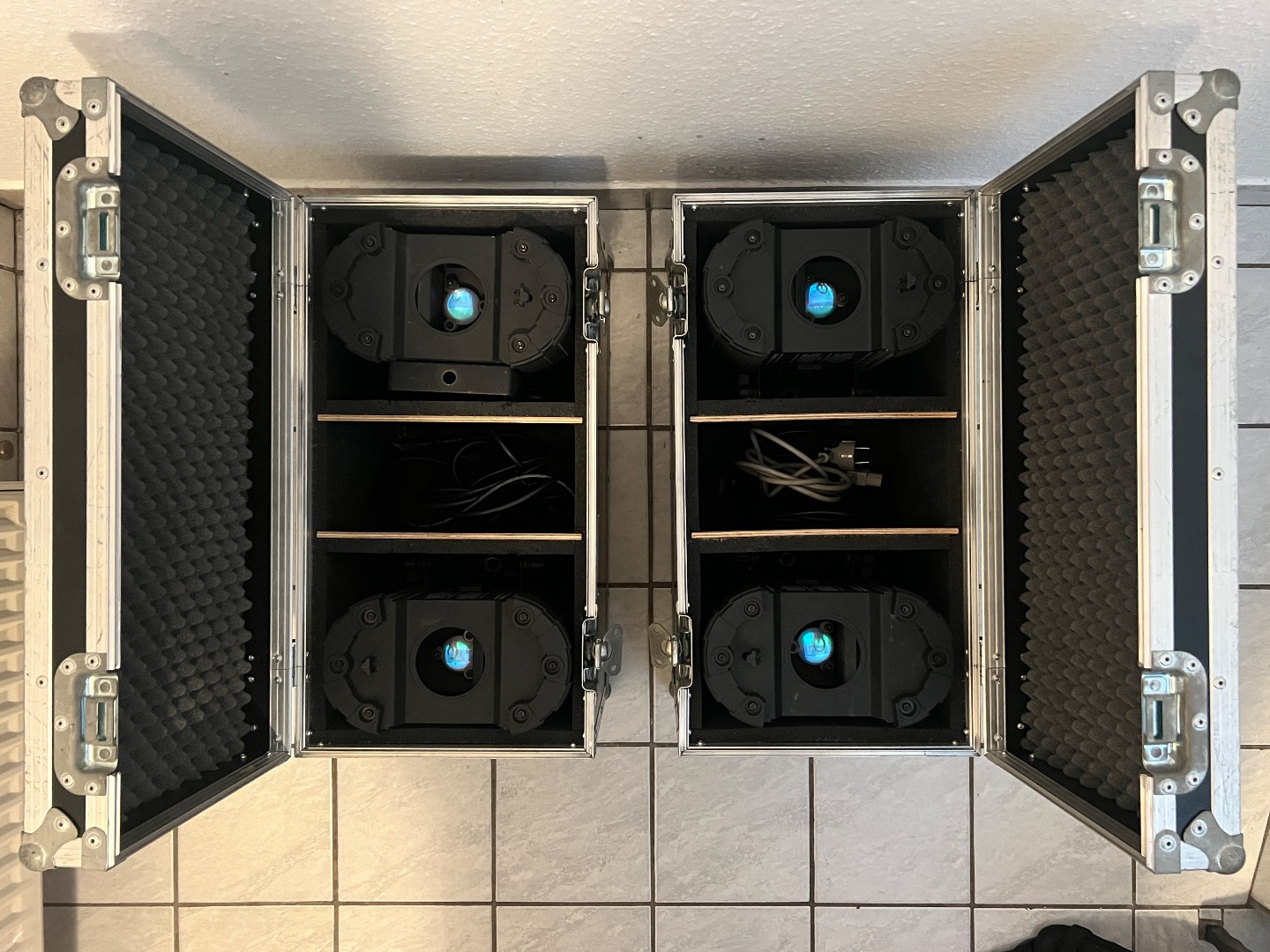 Die Geräte sind in gutem gebrauchten Zustand. Ggf sollten die Leuchtmittel 100W, 12V Halogen MR16 erneuert werden.aktuell funktionieren die Leuchtmittel.