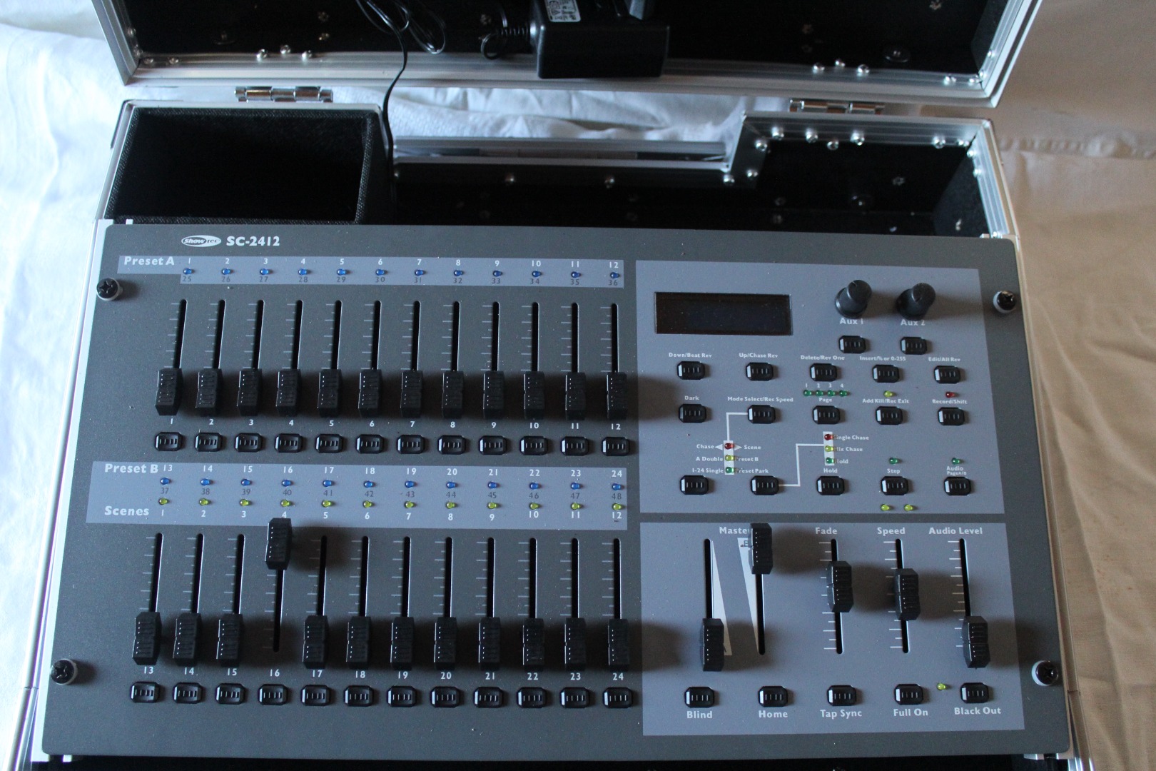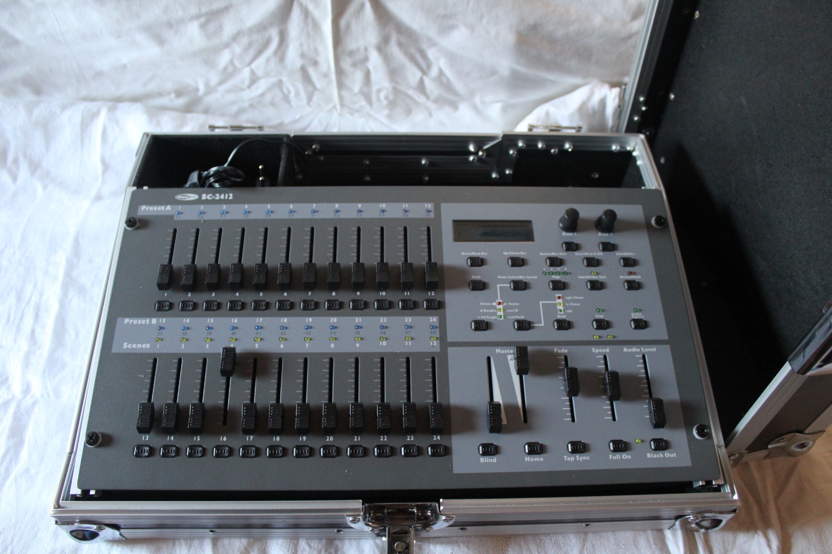 Aus Platzgründen trenne ich mich von meinen Lichtmischpulten incl. Netzteil, Case und Bedienungsanleitung. Die Lichtmischpulte befinden sich in einem gepflegten, sauberen und technisch einwandfreien Zustand. Sie kamen nur wenige Male bei privaten Festlichkeiten zum Einsatz. Der Verkauf beinhaltet, was auf den Fotos zu sehen ist. Hersteller: showtec, Art.- Nr.: SC-2412, Die passenden LED- Fluter und Verkabelungen biete ich in einer anderen Kleinanzeige an.