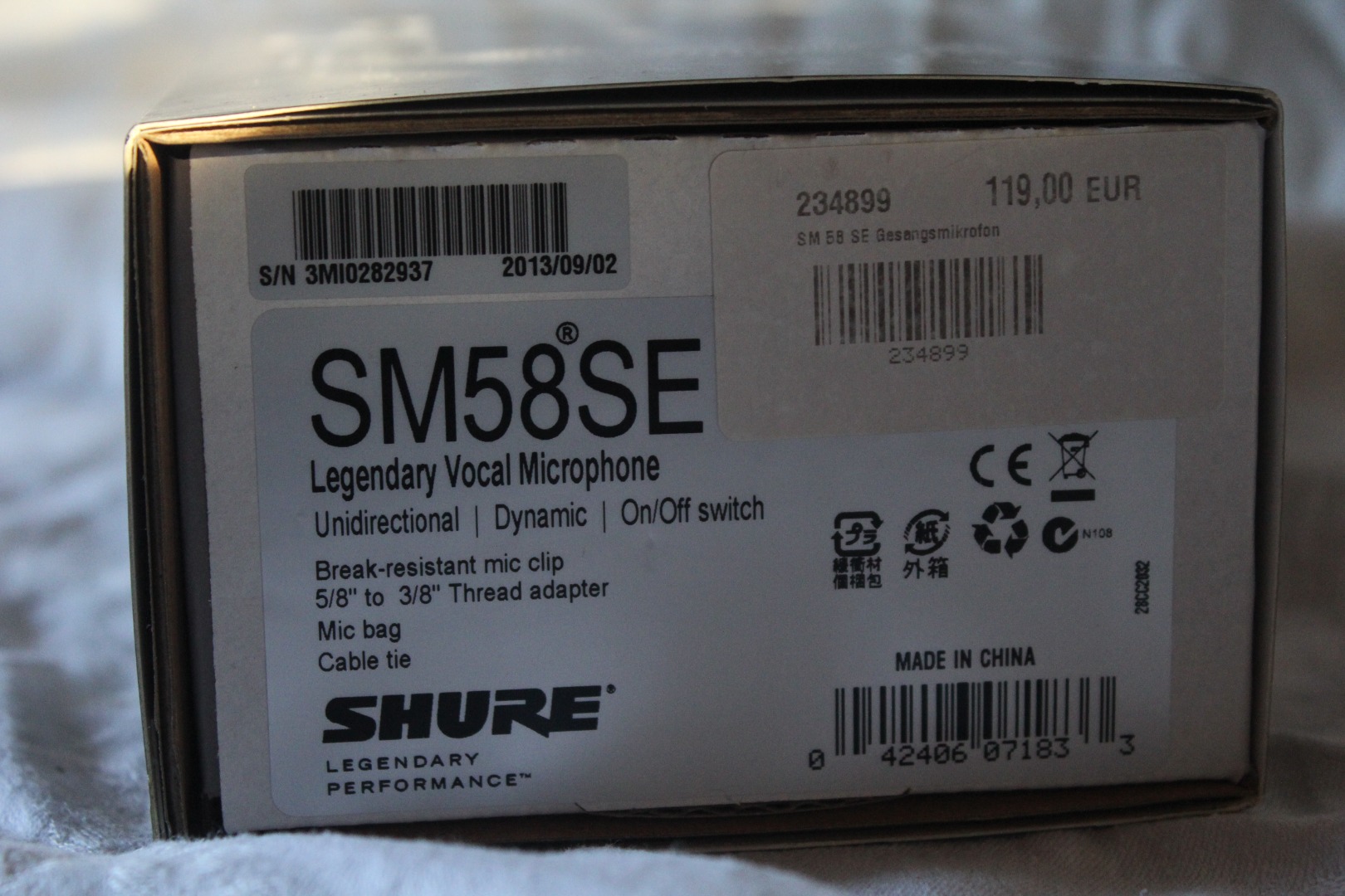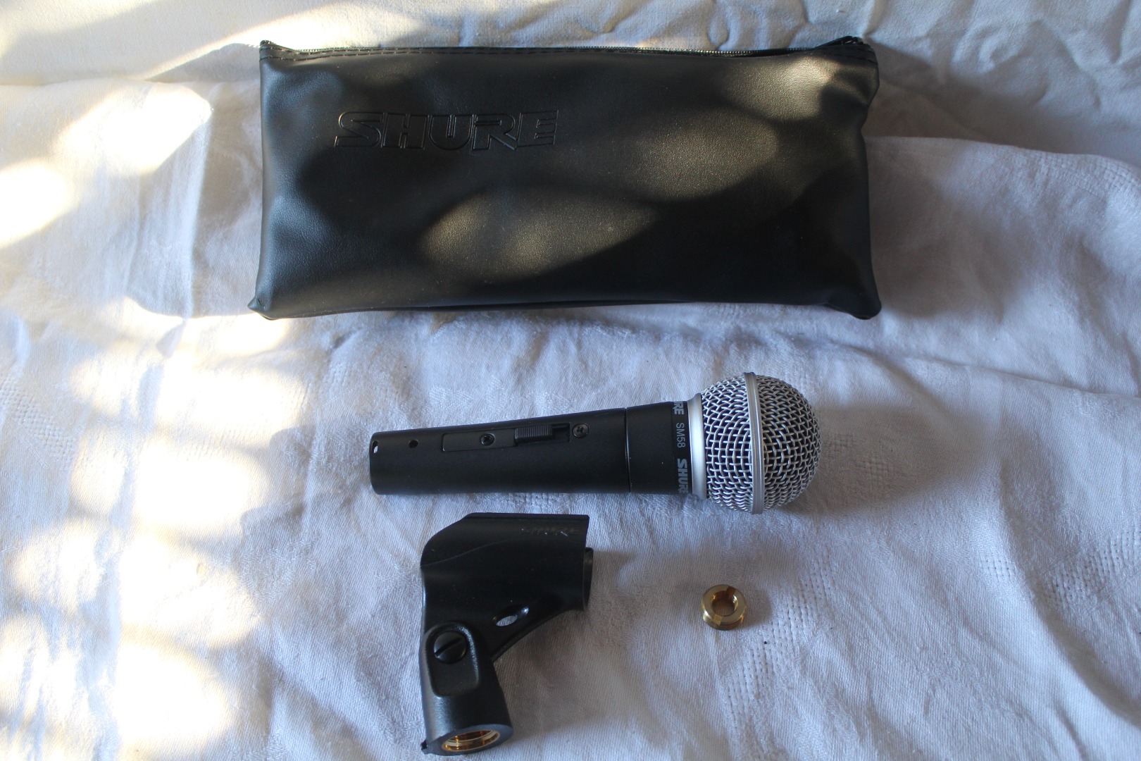 Aus Platzgründen trenne ich mich von meinem Gesangsmikrofon SHURE SM58, Art.- Nr.: 234899 mit 2,5Meter- Kabel und ON- OFF- Schalter in Originalverpackung. Das Mikrofon befindet sich in einem fast neuen, gepflegten, sauberen und technisch einwandfreien Zustand. Es kam nur wenige Male bei privaten Festlichkeiten zum Einsatz. Der Verkauf beinhaltet, was auf den Fotos zu sehen ist.
