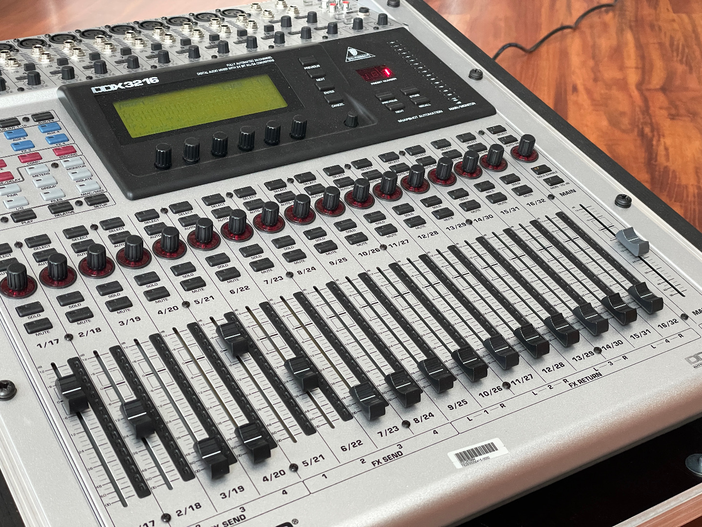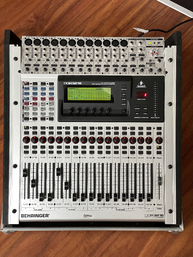 Wenig benutztes Digitalmischpult Behringer DDX 3216 im Thomann-Flightcase aus Studioauflösung
