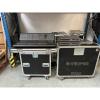 Stabiles Case mit 6 Griffen, Rollen, sodass die Haube hinter dem Pult stehen kann, ordentlich gepolstert, mit Dog-House für Steckdosenleiste und Router etc.