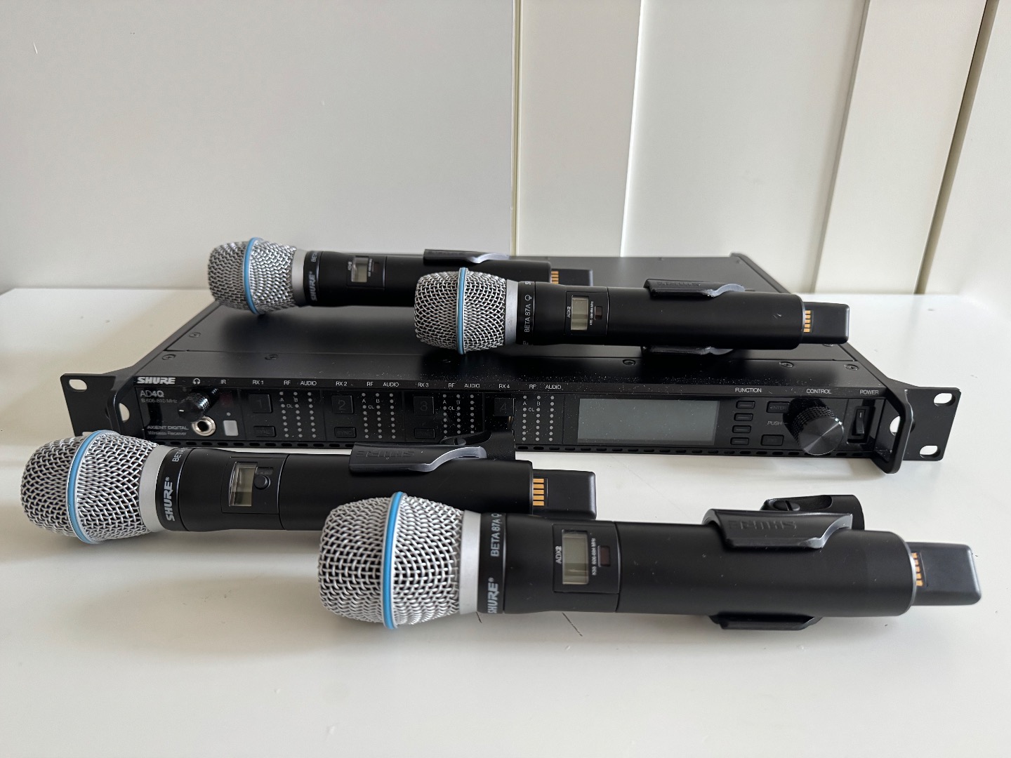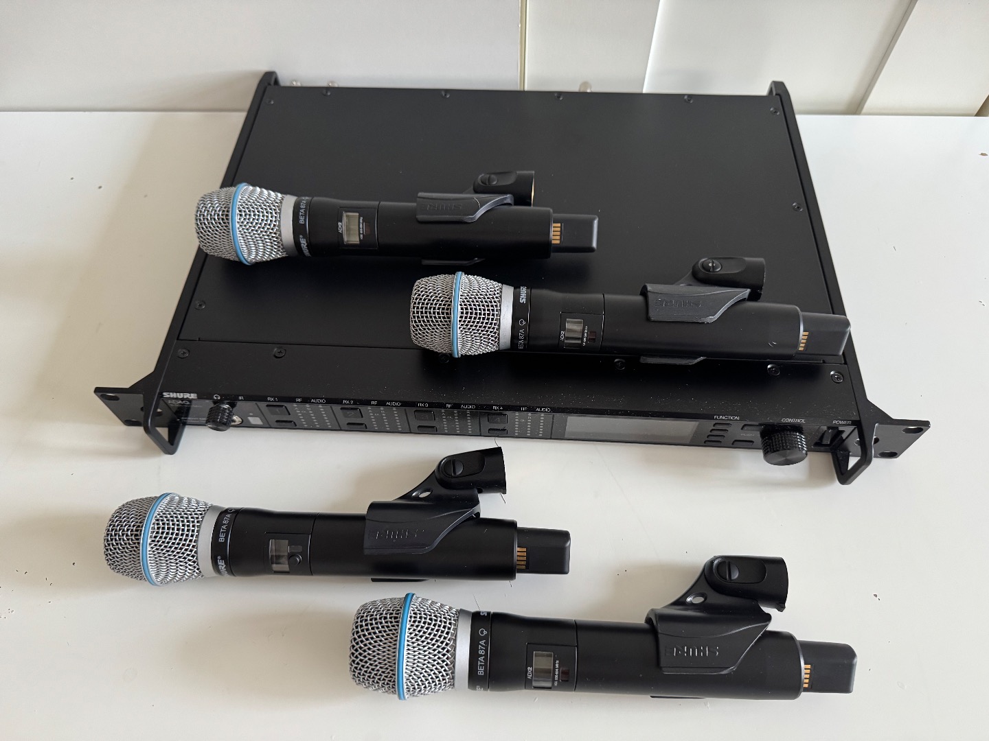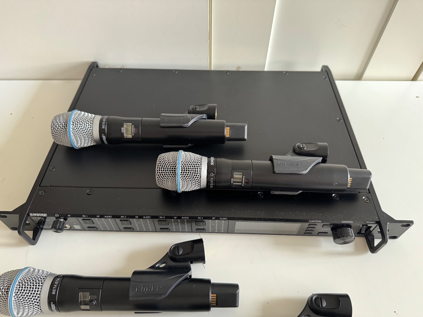 Shure AD4Q Axient Digital 4x Shure ADX2/B87A/C K55 4x Shure SB920 1x Shure SBC210E