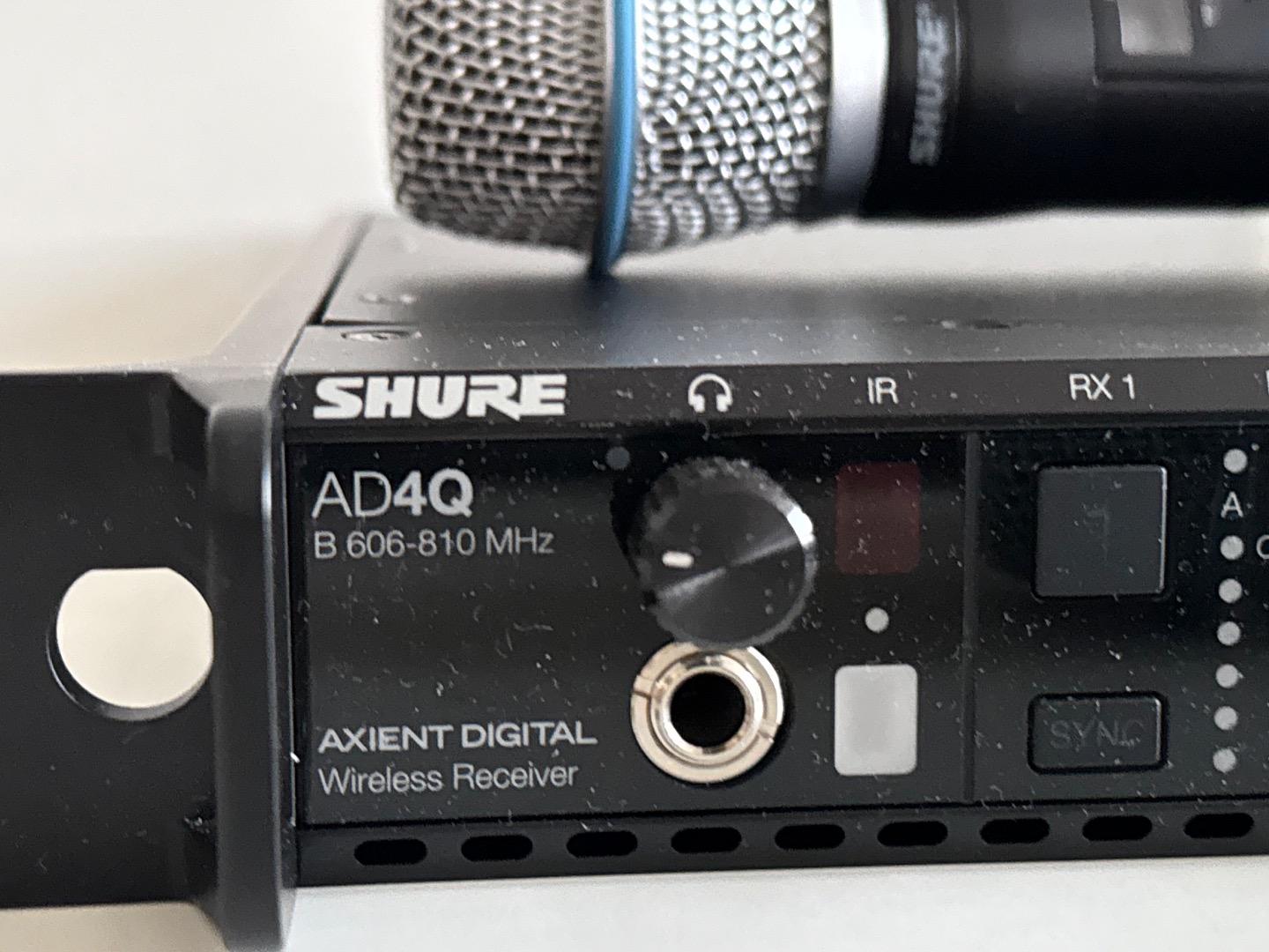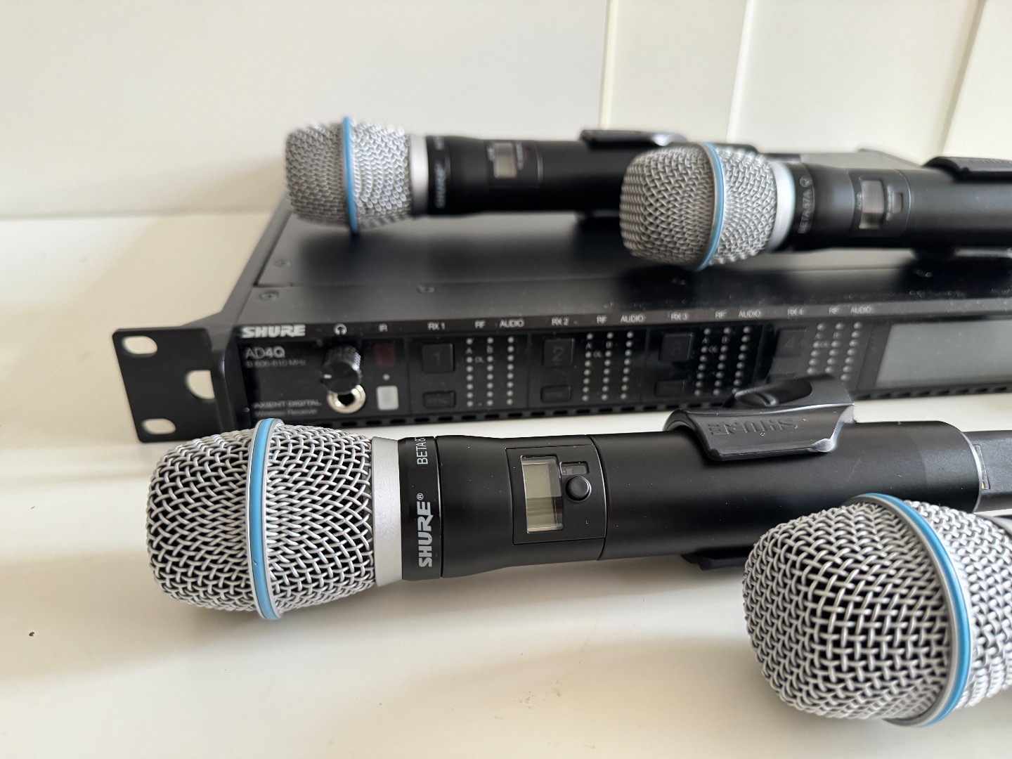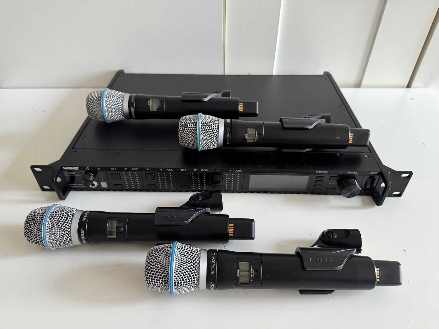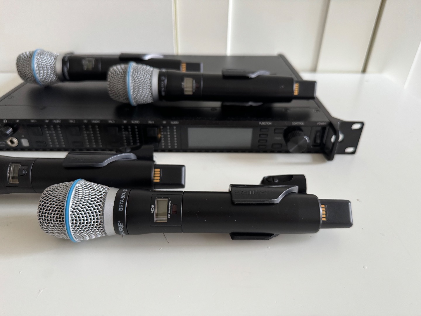 Shure AD4Q Axient Digital 4x Shure ADX2/B87A/C K55 4x Shure SB920 1x Shure SBC210E