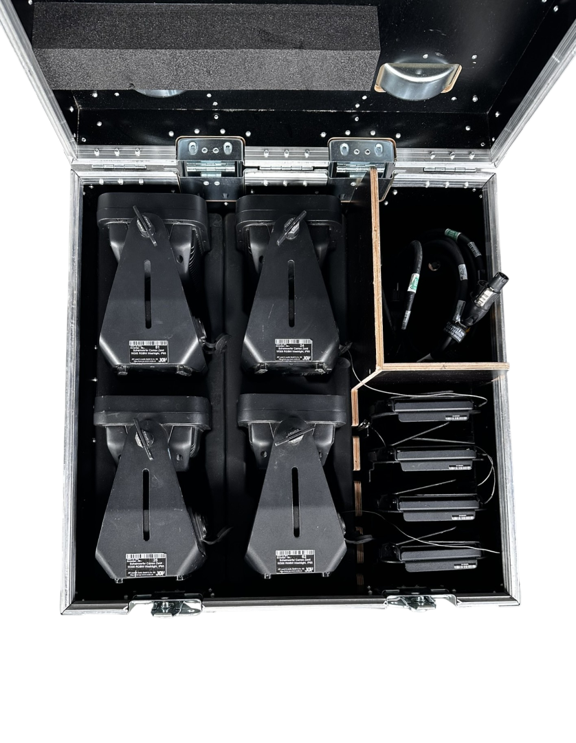 Zum Verkauf steht ein Set bestehend aus 4 Cameo Zenit W300 RGBW IP65 LED-Scheinwerfer, Anschlussleitungen und dem passenden Adam Hall Case.