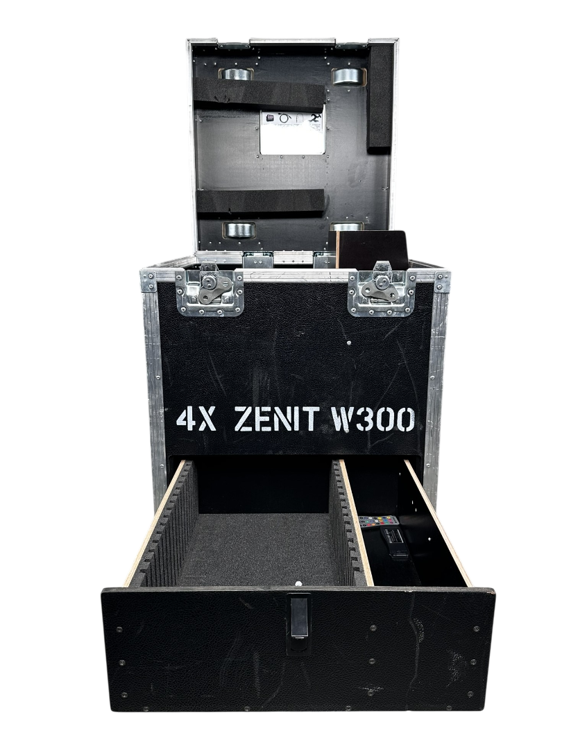 • Maßgefertigtes Flightcase für sicheren Transport und Lagerung von 4 Cameo Zenit W300