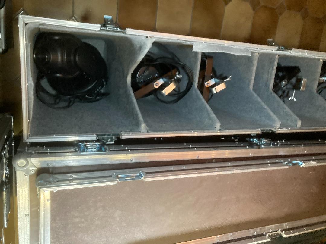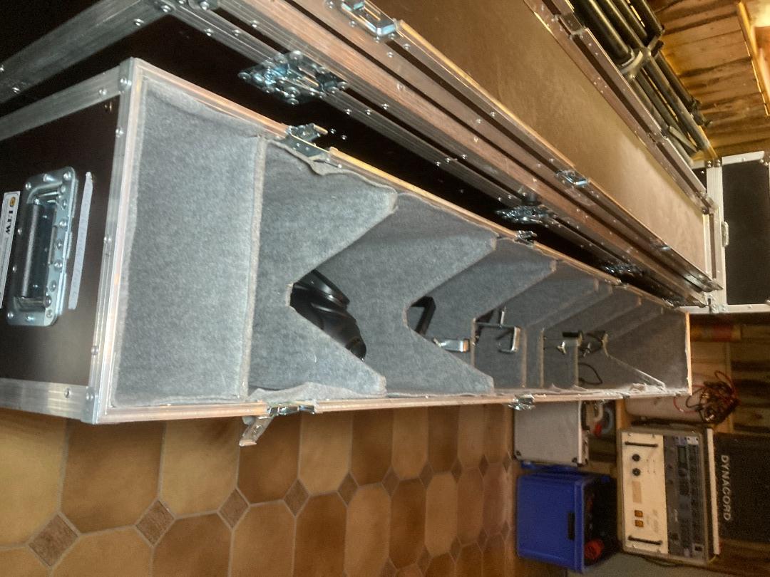 Die Cases sind geeignet zur Aufnahme von je 2m Dreipunkt-Traversen komplett bestückt mit 4 Kannen und 2 MH sowie Zubehör und ein weiteres Gerät wie Nebelmaschine oder Scanner.