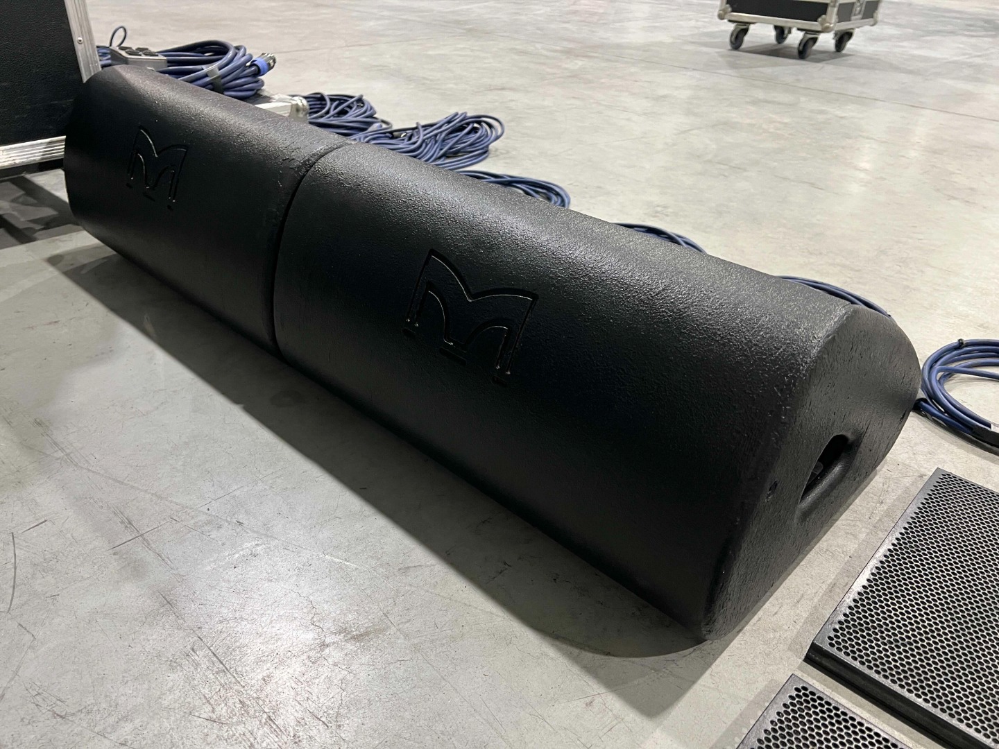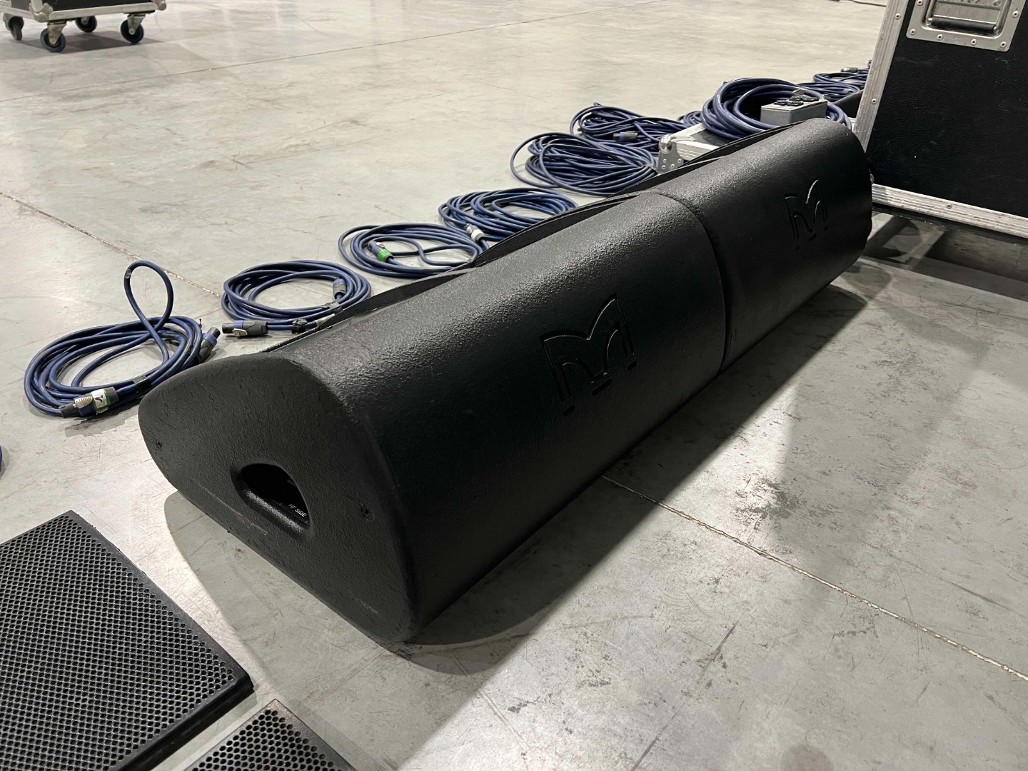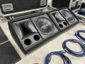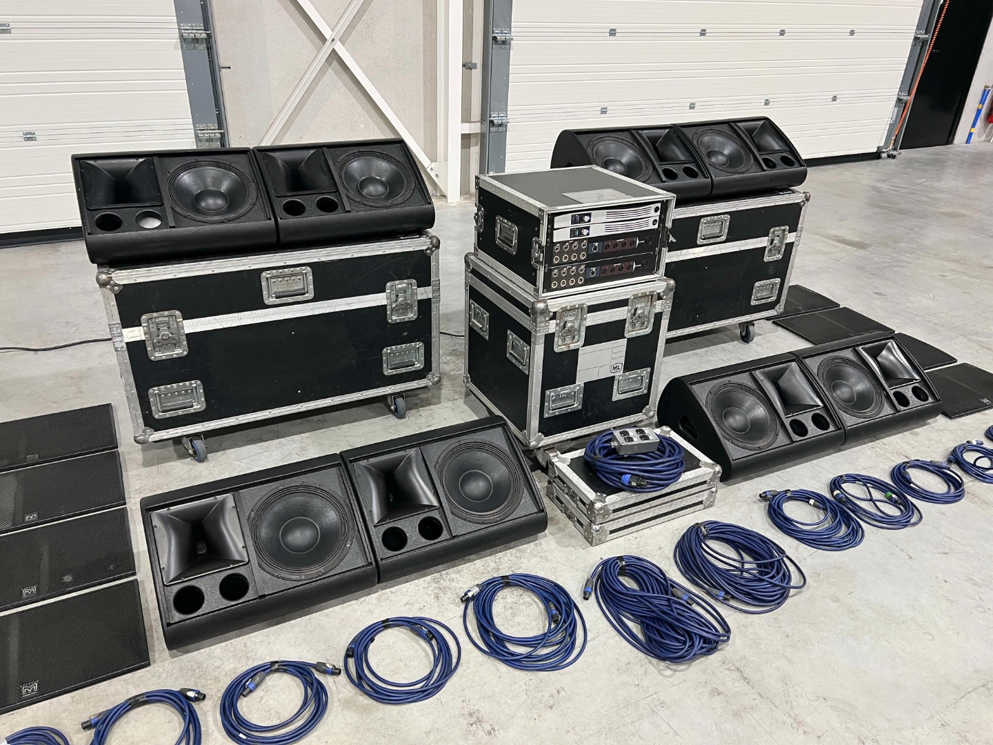 - The middle wheeled flight case, on which the amplifier rack is placed, is not included.