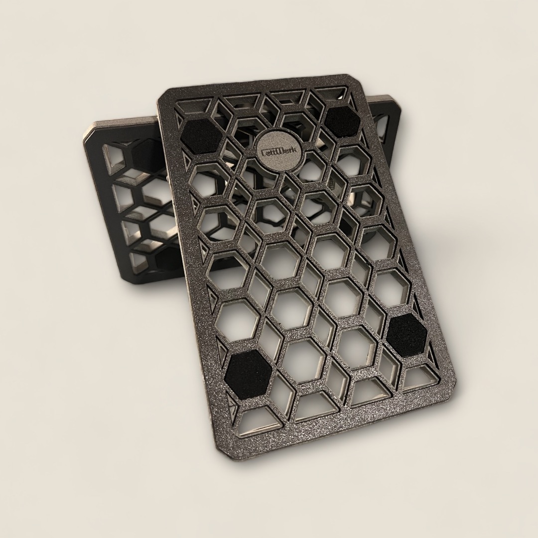 Auf der Unterseite schützen AntiRutsch Füße, dass die Teile herunterfallen und auf der Oberseite bietet eine Softtouchauflage eine tolle Oberfläche! Für alle die noch mehr Sicherheit wollen oder ein extrem rutschiges Laptop besitzen, gibt es optional noch AntiRutsch Einlagen. Diese werden einfach in die 6-Ecke eingesteckt und bieten extra Schutz für eure Laptops.
