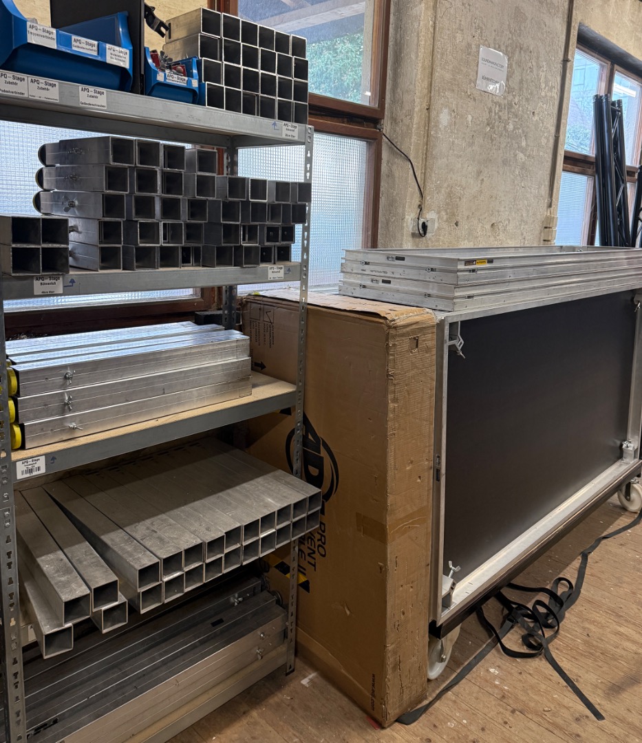 zum Verkauf stehen verschiedene APQ Stage Bühnenplatten, Absturzsicherungen, Treppe und Zubehör. Einwandfreier Zustand.