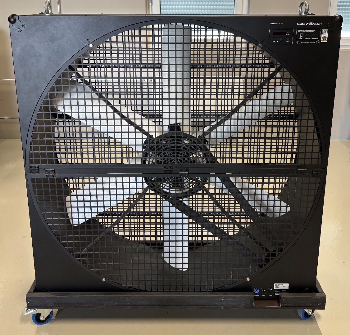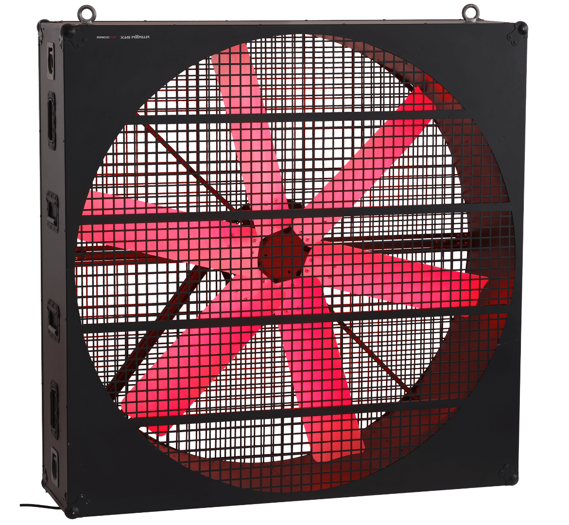 Der MFX Stage Propeller ist eine kraftvolle Windmaschine mit integrierter LED-Beleuchtung. Er kann auf dem Boden/Bühne stehen oder kann auf- bzw. abgehangen werden. Die Drehrichtung, Geschwindigkeit, Helligkeit, Farbe und Strobe-Effekt lassen sich unabhängig über DMX ansteuern. Somit wird der Stage-Propeller zu einem echten Blickfang auf jeder Veranstaltung.