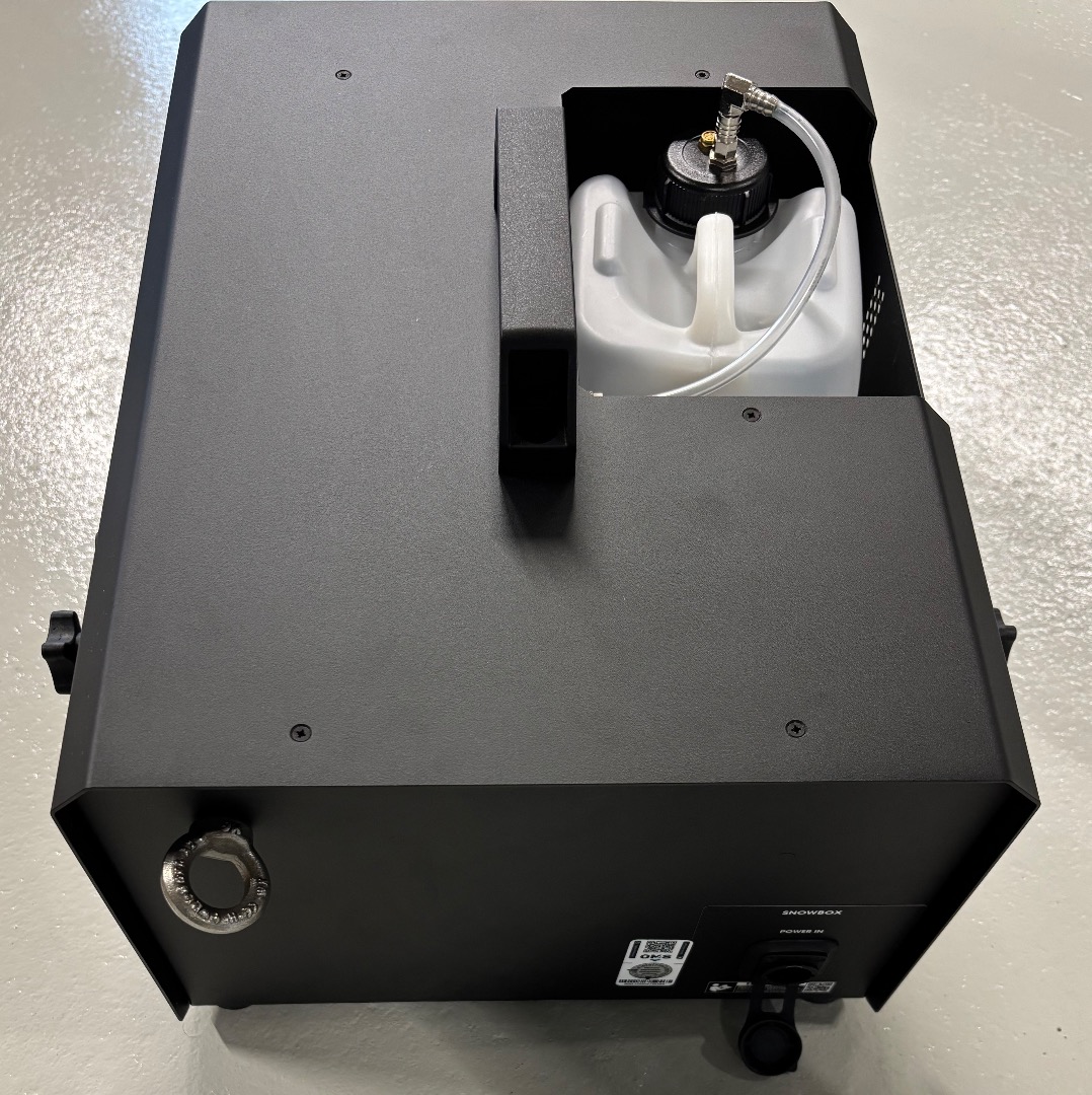 Die Maschine verwendet auf Schaumflüssigkeit basierendes Schneefluid und bläst realistische Schneeflocken bis zu 7 Meter in die Luft. Die Snowbox ist mit einer hochwertigen Pumpe, einem leistungsstarken Luftgebläse und einem speziell entwickelten Schalldämpfer ausgestattet, was die Snowbox perfekt für kleine Veranstaltungsorte und Weihnachtsveranstaltungen macht.