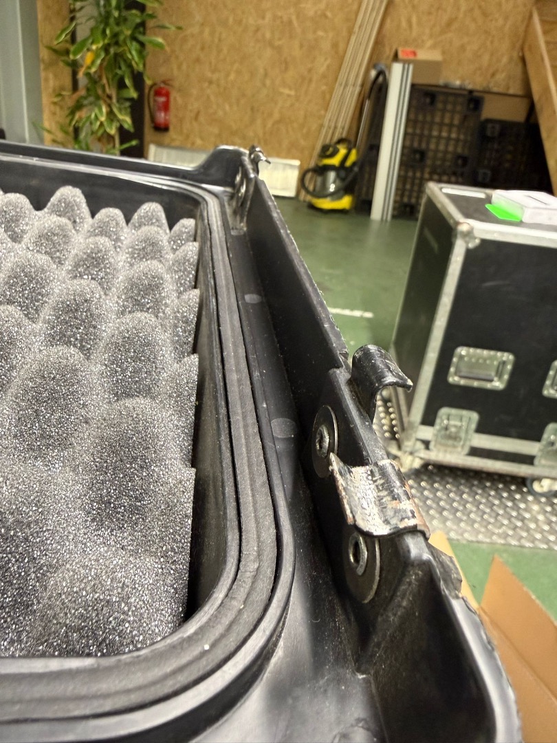 Leicht Schäden - eins der Scharniere ist verbogen (siehe Bilder), Case lässt sich aber dennoch normal schließen