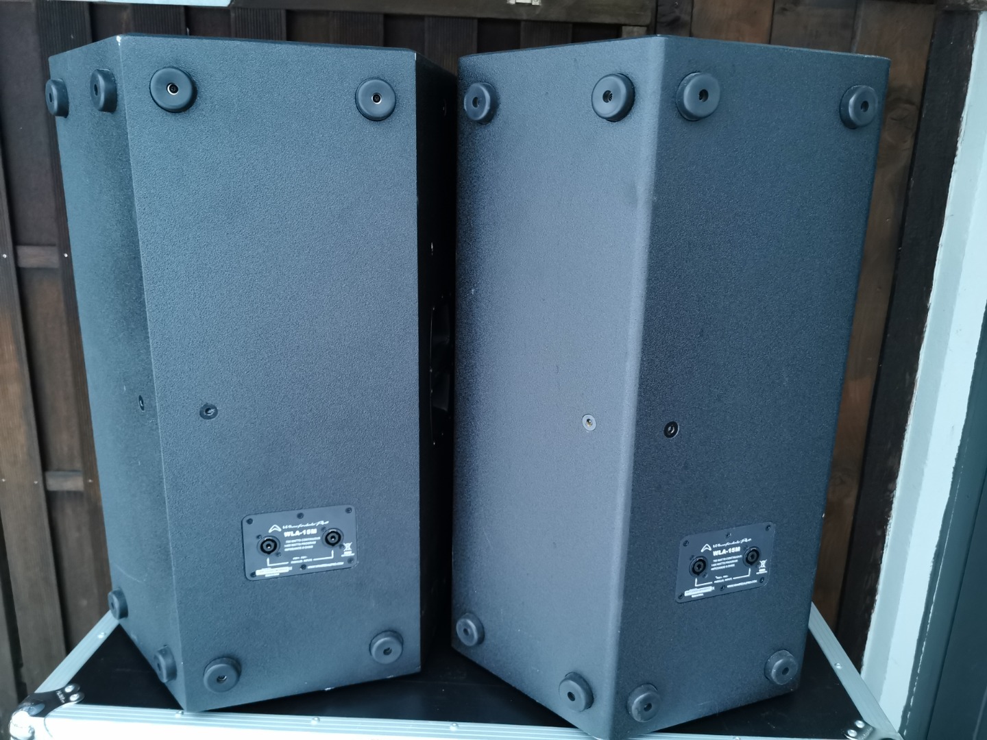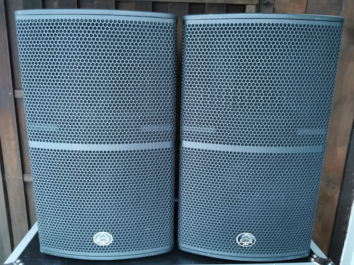 Zum Verkauf steht ein Paar (2 Stück sowie Haubencase) passive 15 Zoll / 3 Zoll Fullrange PA-Topteile (MuFu) des englischen Herstellers Wharfedale Pro.