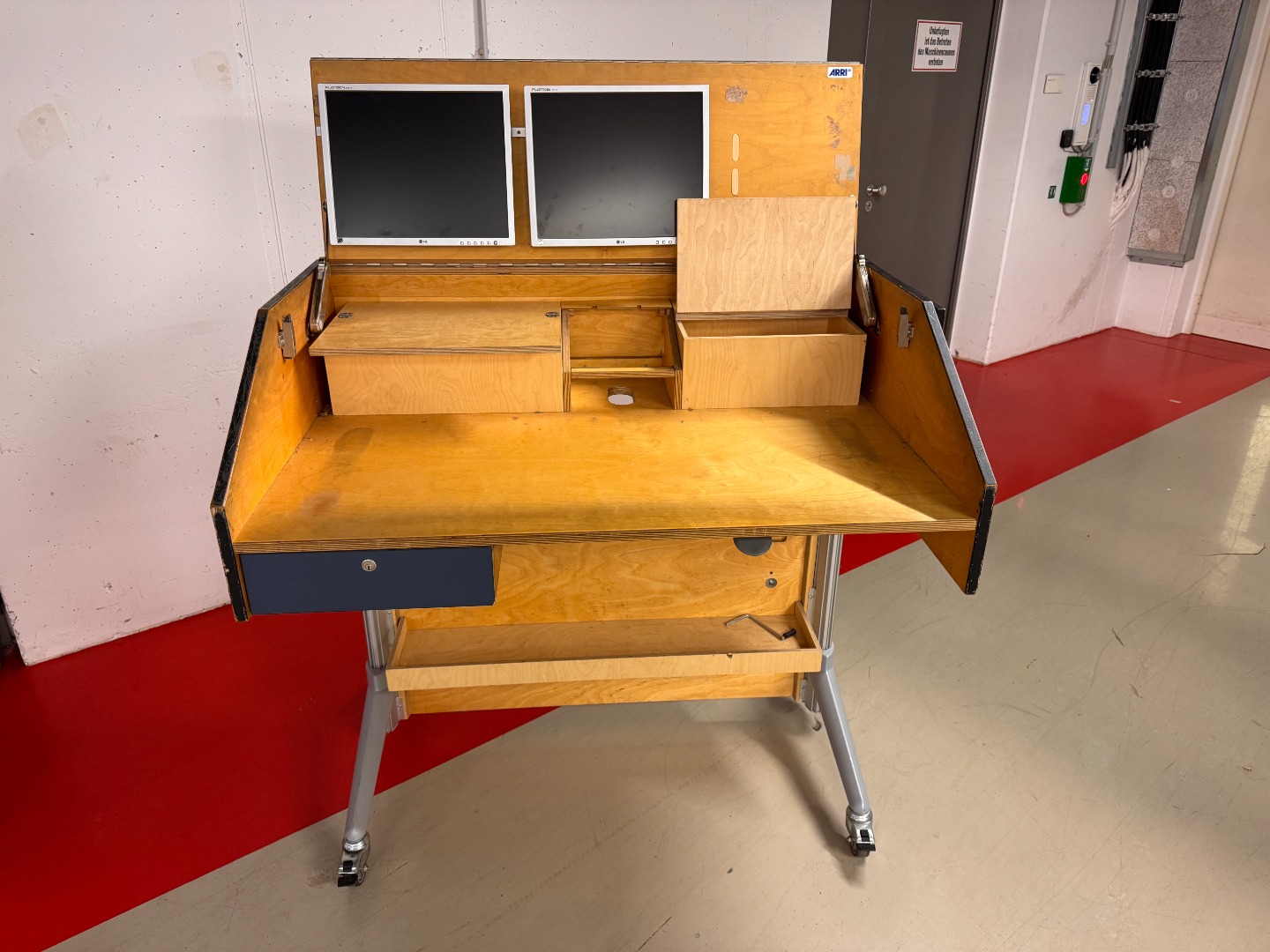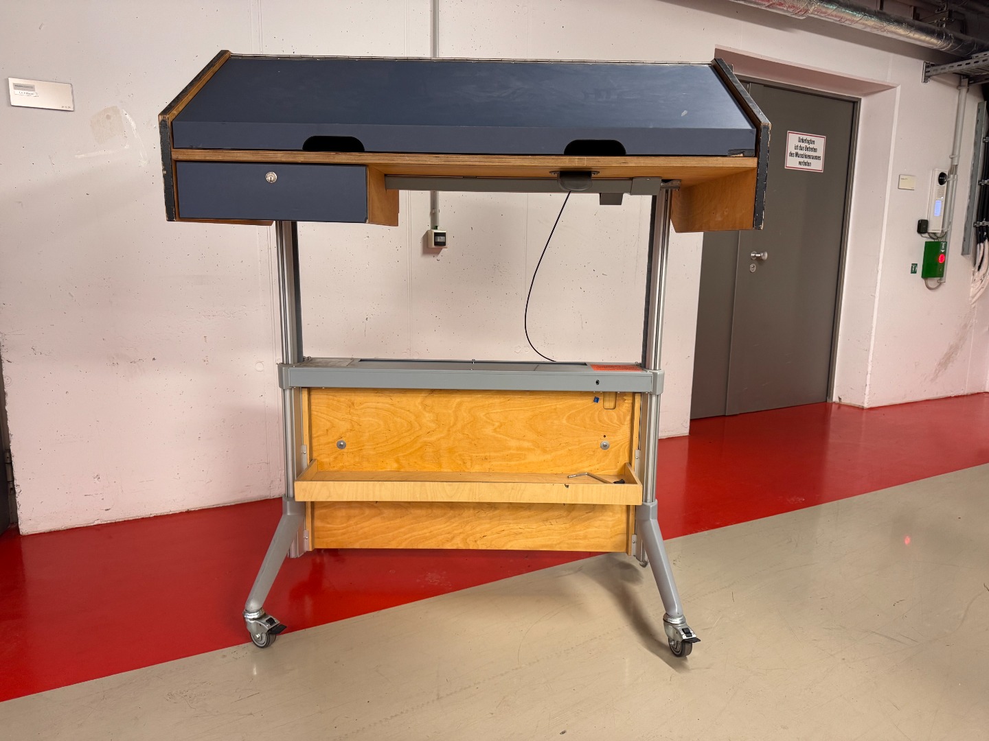 Wir möchten diesen Regietisch abgeben, er ist rollbar und höhenverstellbar, voll funktionsfähig.