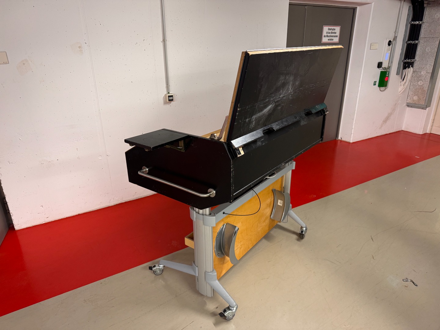 Er wurde von einer Berliner Tischlerei extra für uns angefertigt. Wir haben damit die Pulte prima innerhalb eines Studios an die jeweiligen Plätze gefahren. Ist nun nicht mehr notwendig, wir brauchen ihn nicht mehr.