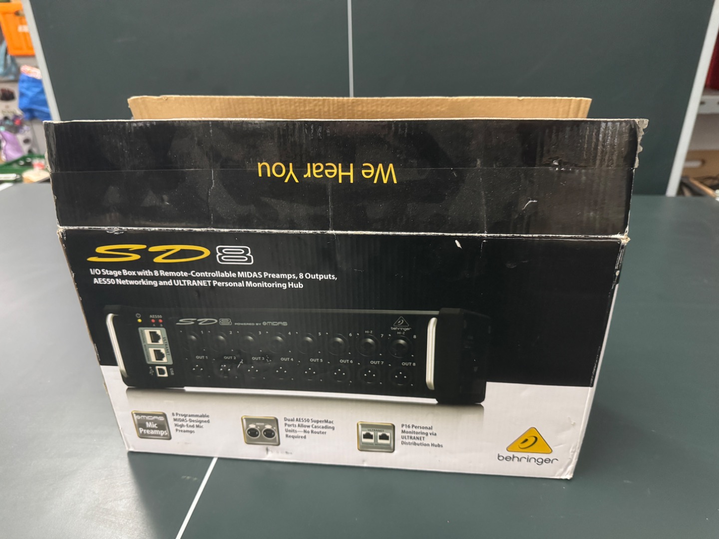 Wir verkaufen unsere Behringer SD8 Stagebox aufgrund eines Pult Wechsels. Diese ist voll funktionsfähig, hat allerdings schon einiges gesehen und ist dementsprechend am Gehäuse verkratzt. (Siehe Bilder)