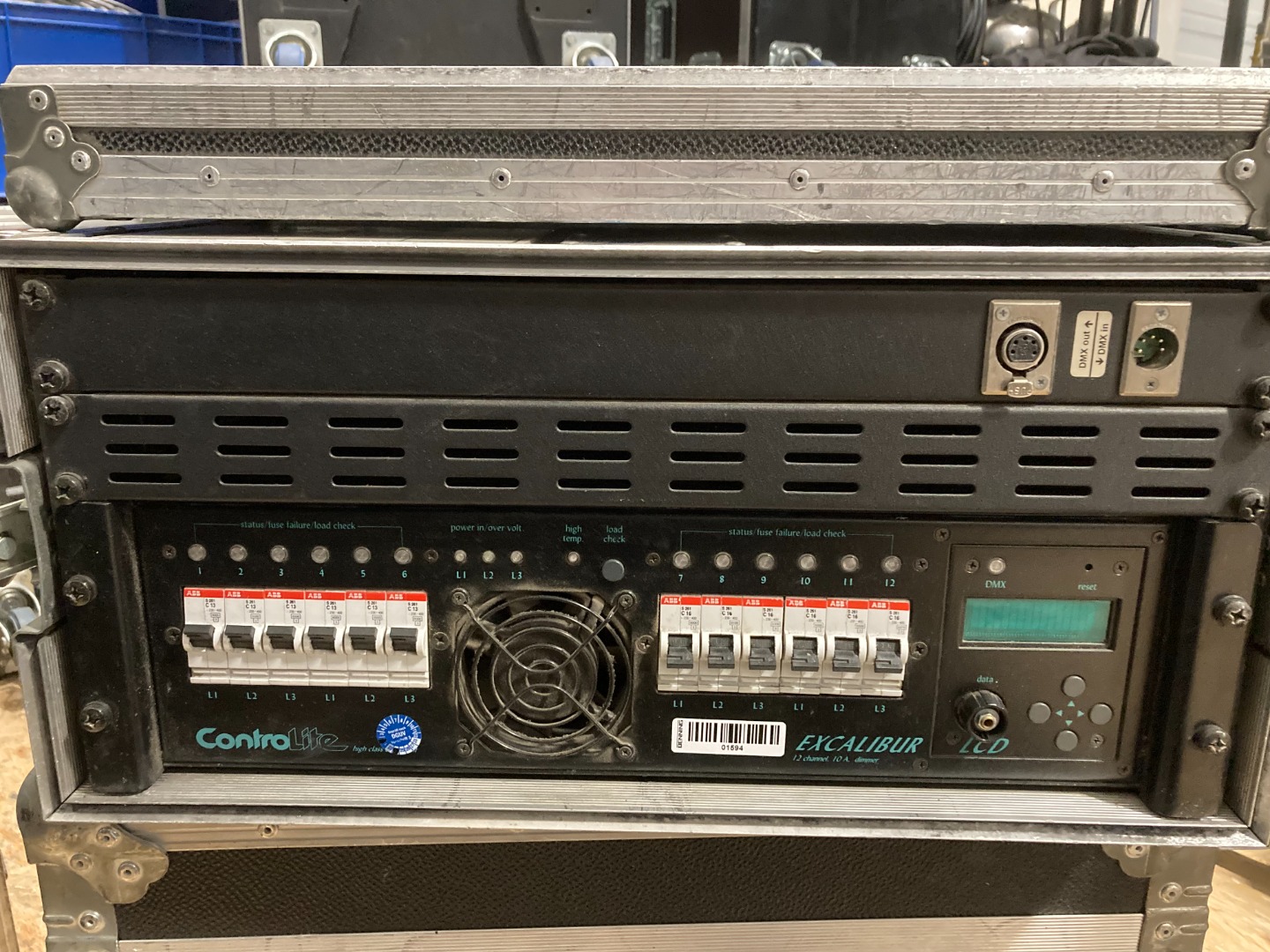 Zum Verkauf steht ein Controlite Excalibur LCD - 12-Kanal Dimmer Rack mit Hotpatch Feld im 19" Amptown Rack