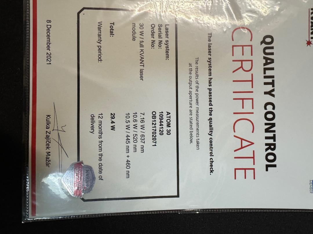 I am selling a KVANT ATOM 30 FB4 LASER, 30 watts RGB,