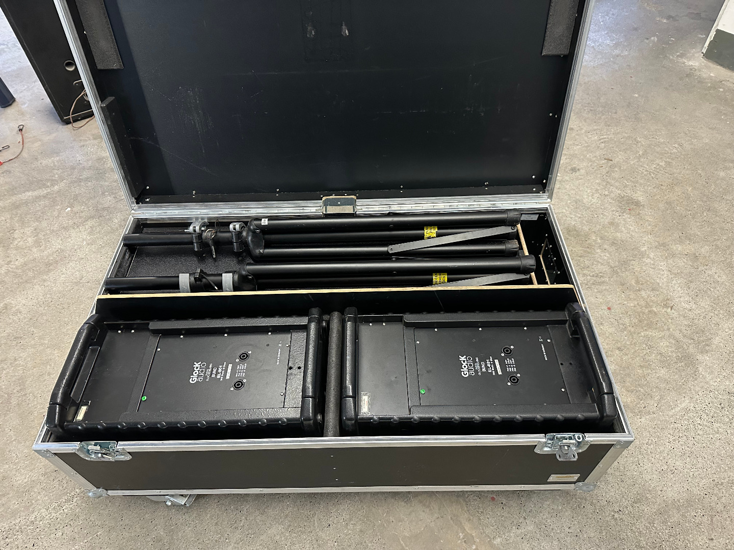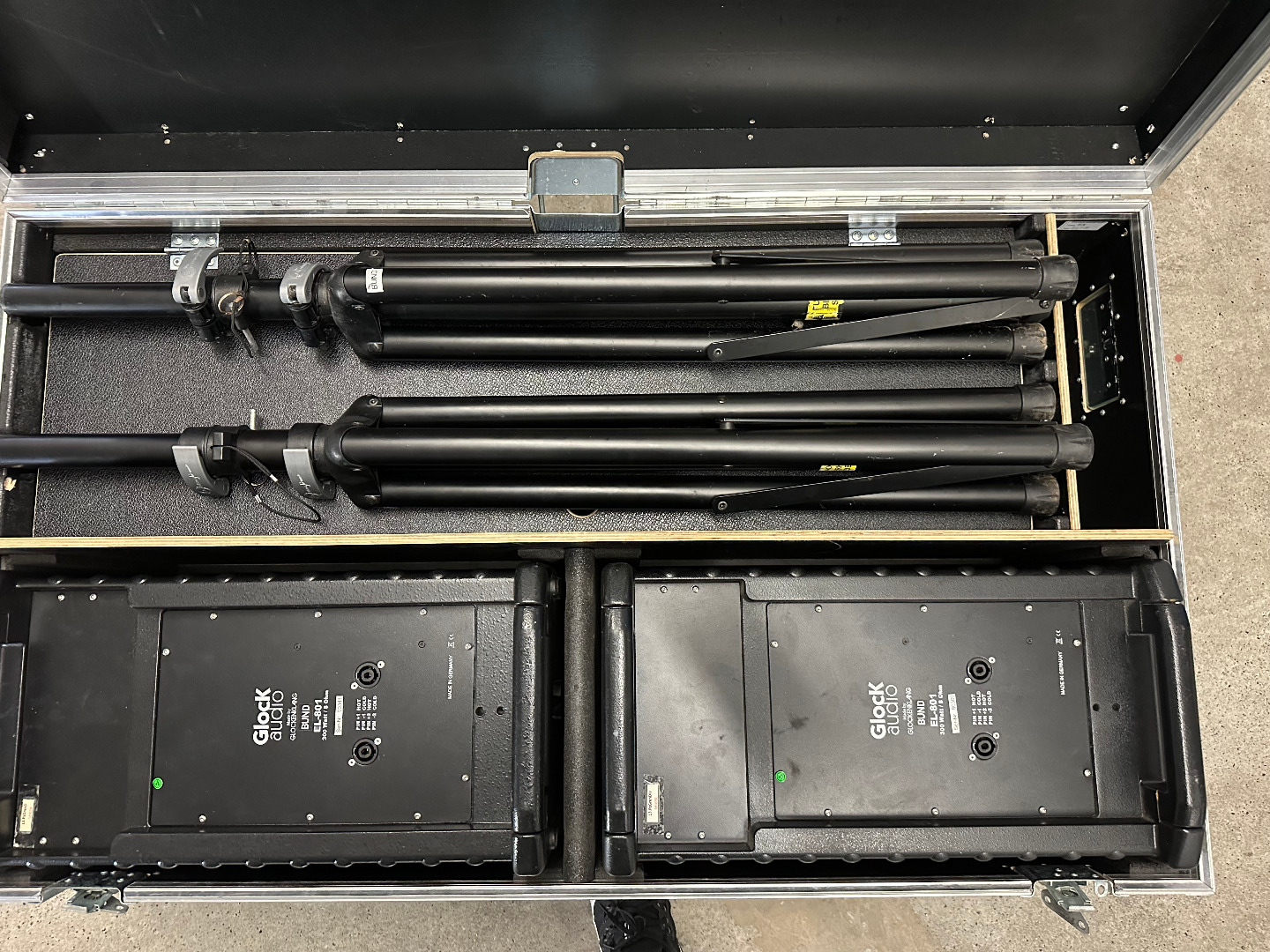 Ich biete hier insgesamt zwei Sets mit jeweils einem Paar Glock Audio EL801 Lautsprecher im Case mit passenden K&M Stativen und Speakon Kabeln!