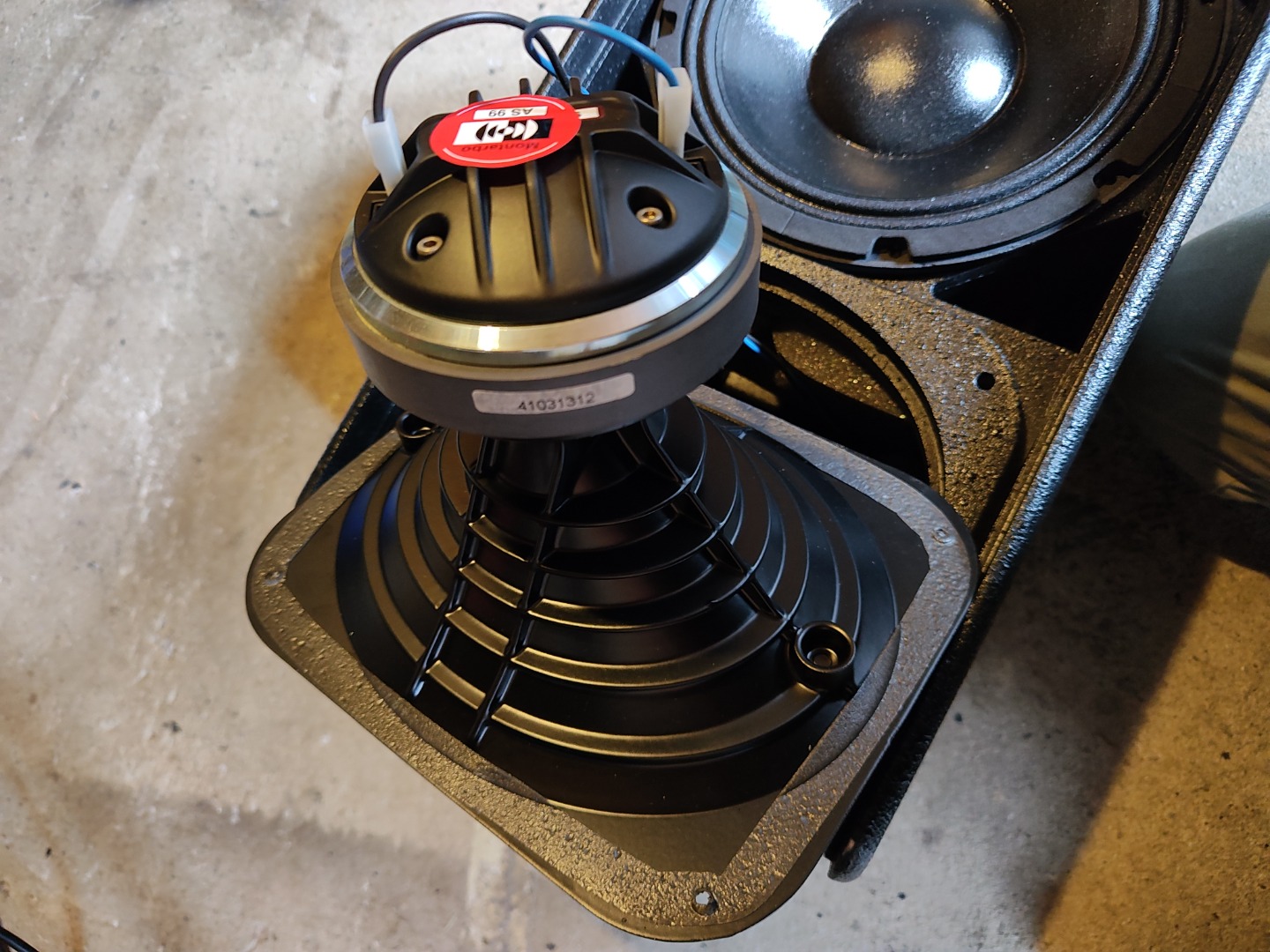 Die Lautsprecher sind super bestückt mit einem Sica Neodym Tieftöner ( Sica 10bs3pl) mit 3" Schwingspule und einem speziell entwickelten B&C 1" Hochtöner mit einer großen 2,5" Schwingspule, an einem 18sound XT1086 Horn.