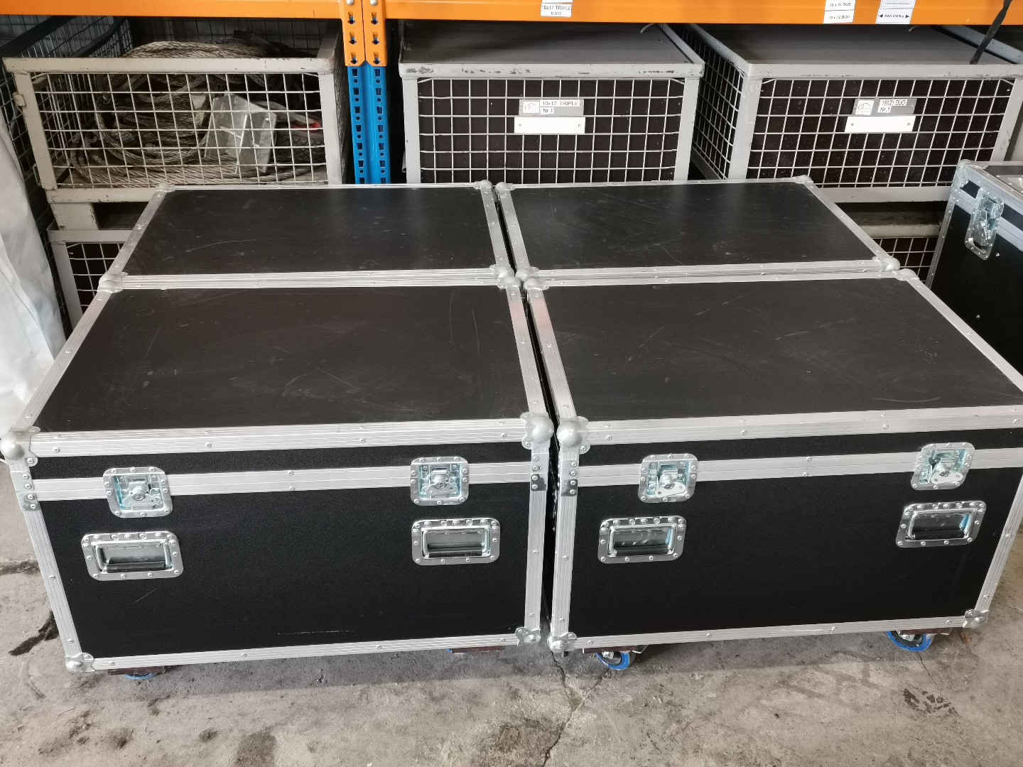 Wir bieten insgesamt 4 St. wenig gebrauchte Fligtcases an. Die Inneneinrichtung war für LED Flächenstrahler, kann aber entfernt werden. Die Cases sind mit Penn Elcom Bauteilen gefertigt und haben sehr stabile Lenkrollen, 2 davon mit Bremse.