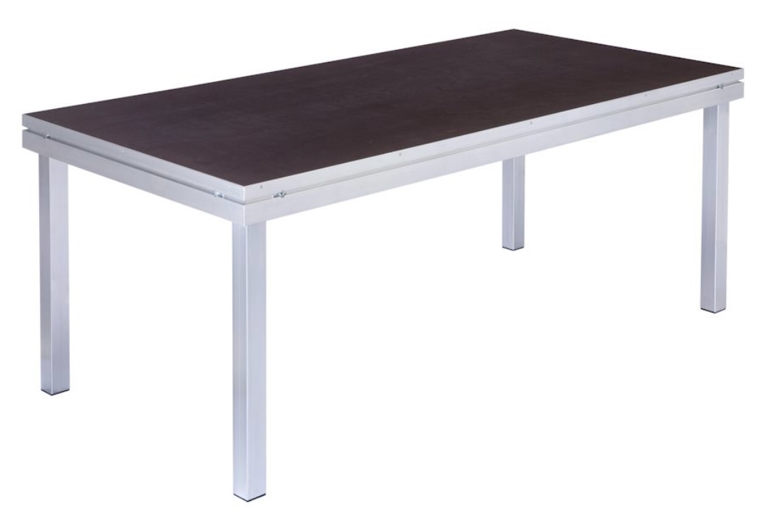 Verkauft werden APQ S&S 750 200x100 Bühnenplatten ebenso das passende Geländer.