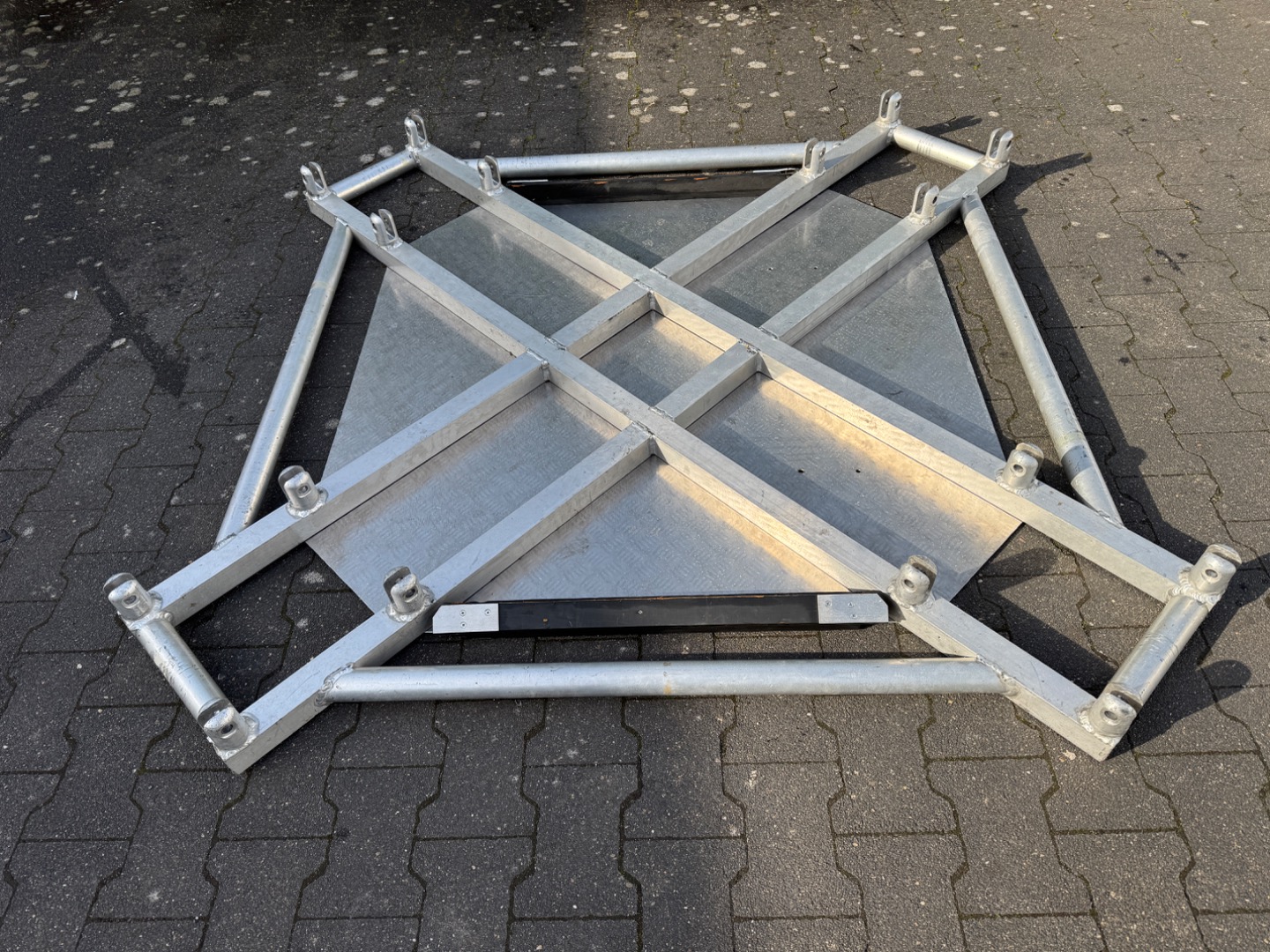 Maße: 1685mm x 1685mm über alles; Platform 1235mm x 1235mm.
