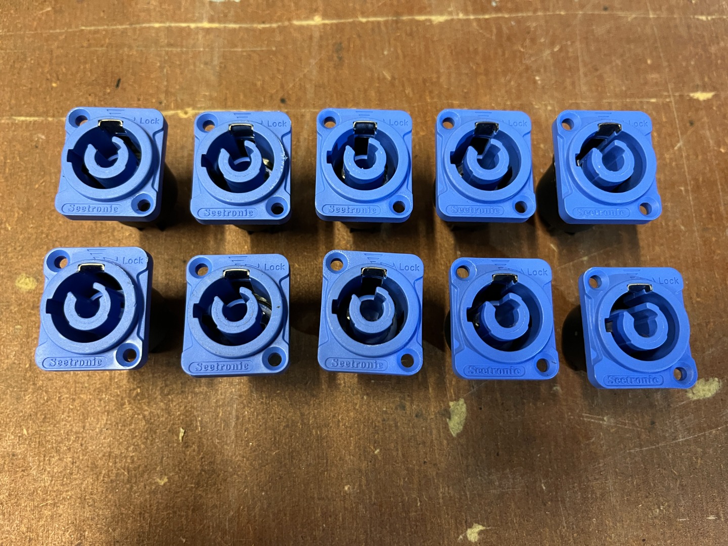 Biete das abgebildete Set aus 10 Stück Seetronic PowerCon blau Einbaubuchsen an.